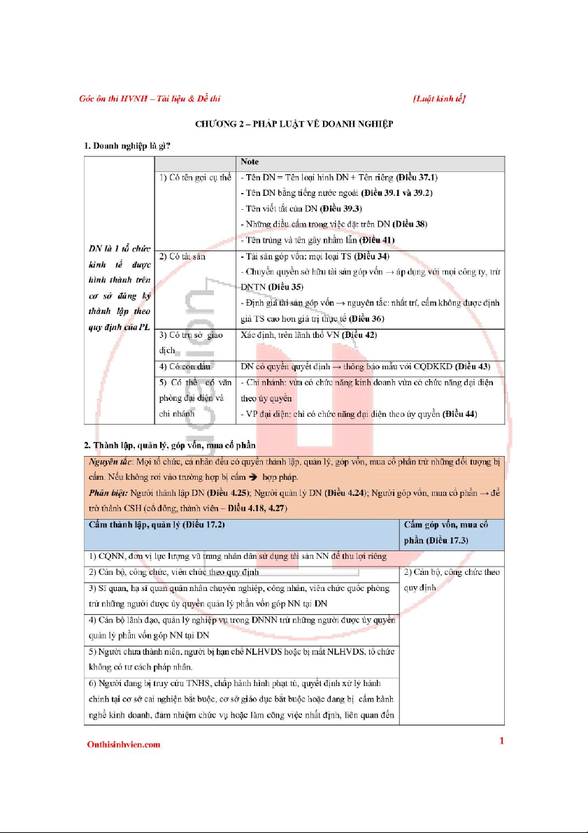 DN là 1 tổ chức kinh tế được hình thành trên cơ sở đăng ký thành lập theo quy định của PL. Tài liệu được sưu tầm gồm 7 trang, giúp các bạn nắm vững kiến thức, rèn luyện kỹ năng và đạt được kết quả tốt trong học tập. Mời các bạn đón xem!