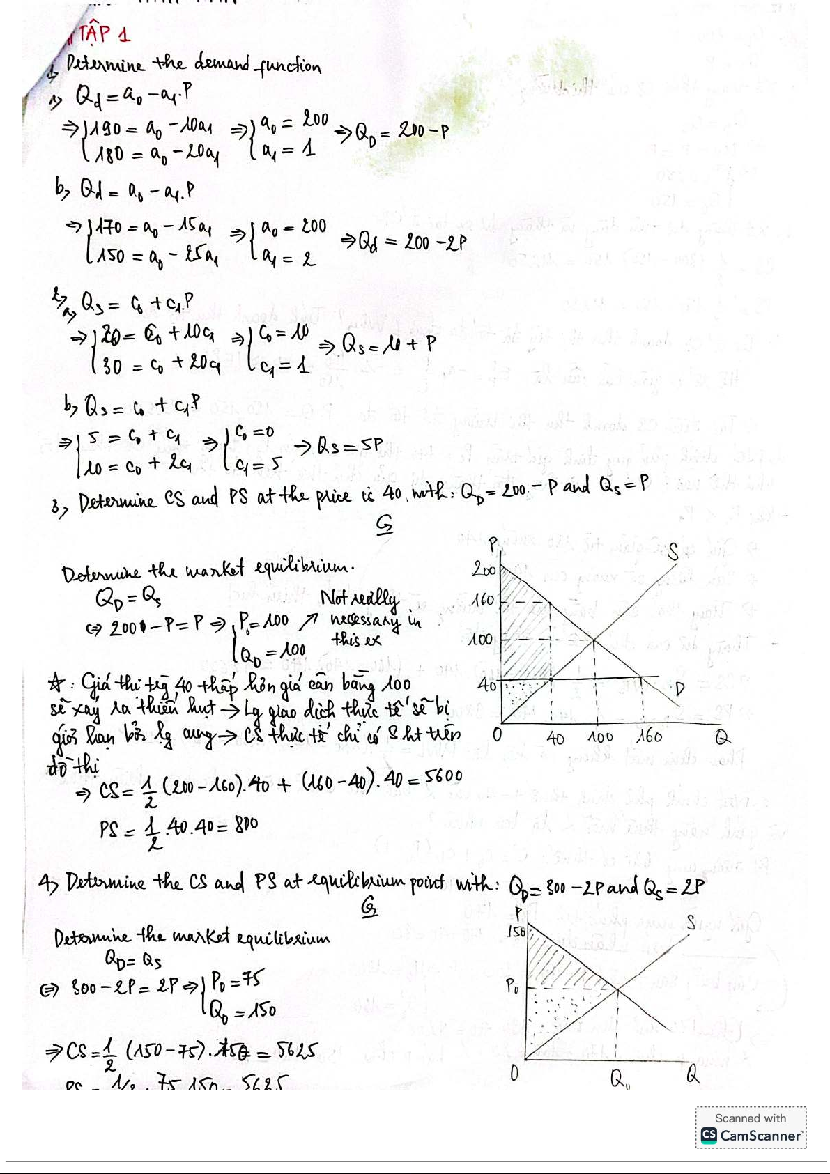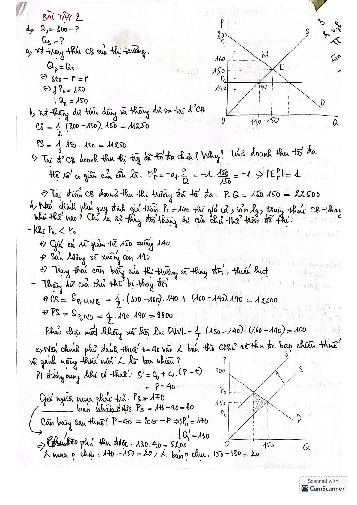 Bài tập phân tích cân bằng thị trường hàng hóa môn Kinh tế vi mô 1 | Học viện Tài chính