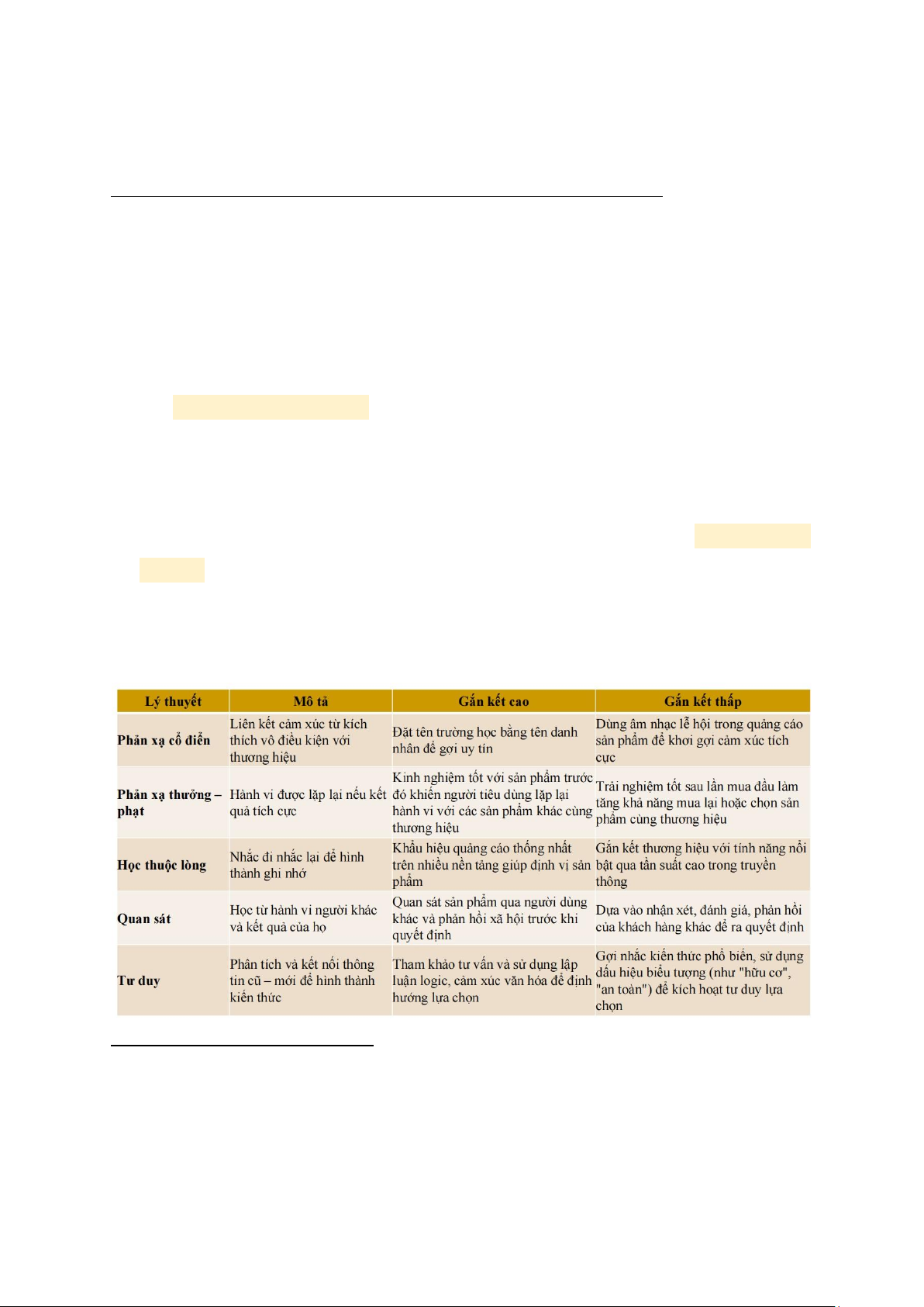 + Được kích hoạt khi có sự liên tưởng ngữ nghĩa – các khái niệm liên kết trong mạng trí nhớ. lOMoAR cPSD| 61207676