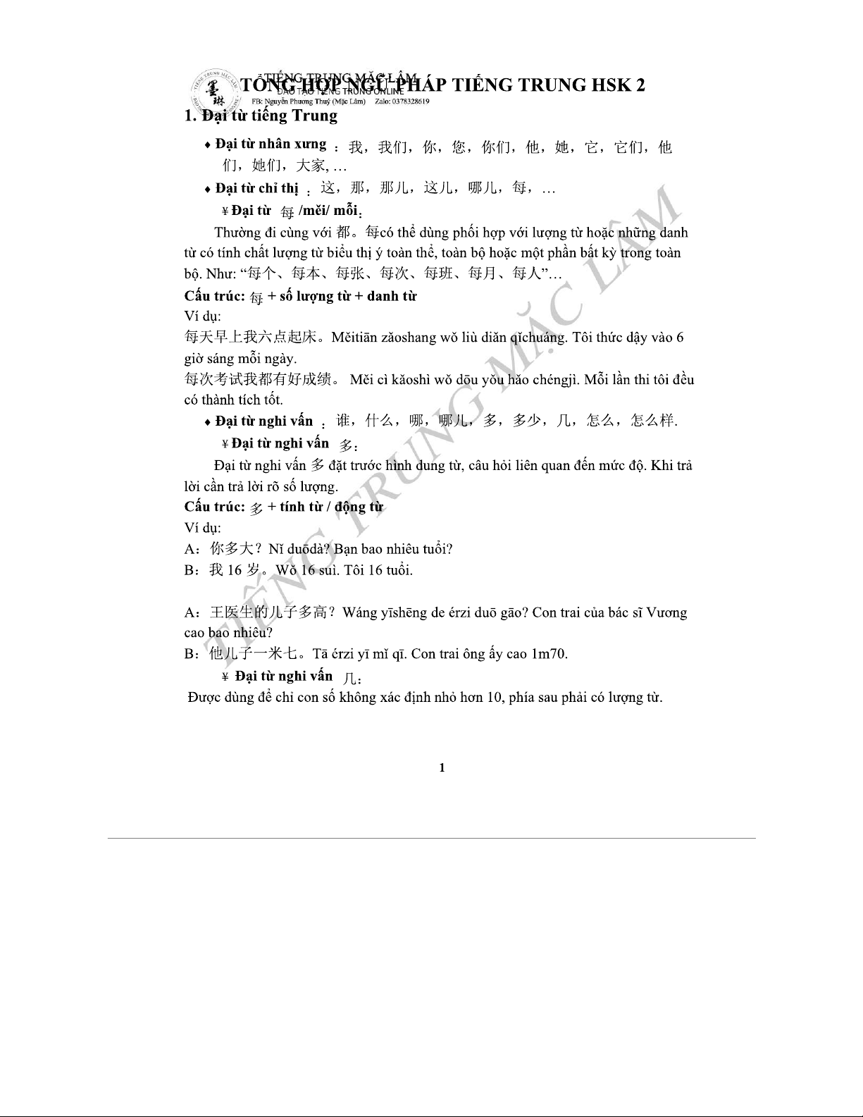 Tổng Hợp Ngữ Pháp Tiếng Trung HSK 2 - Các Khái Niệm Cơ Bản