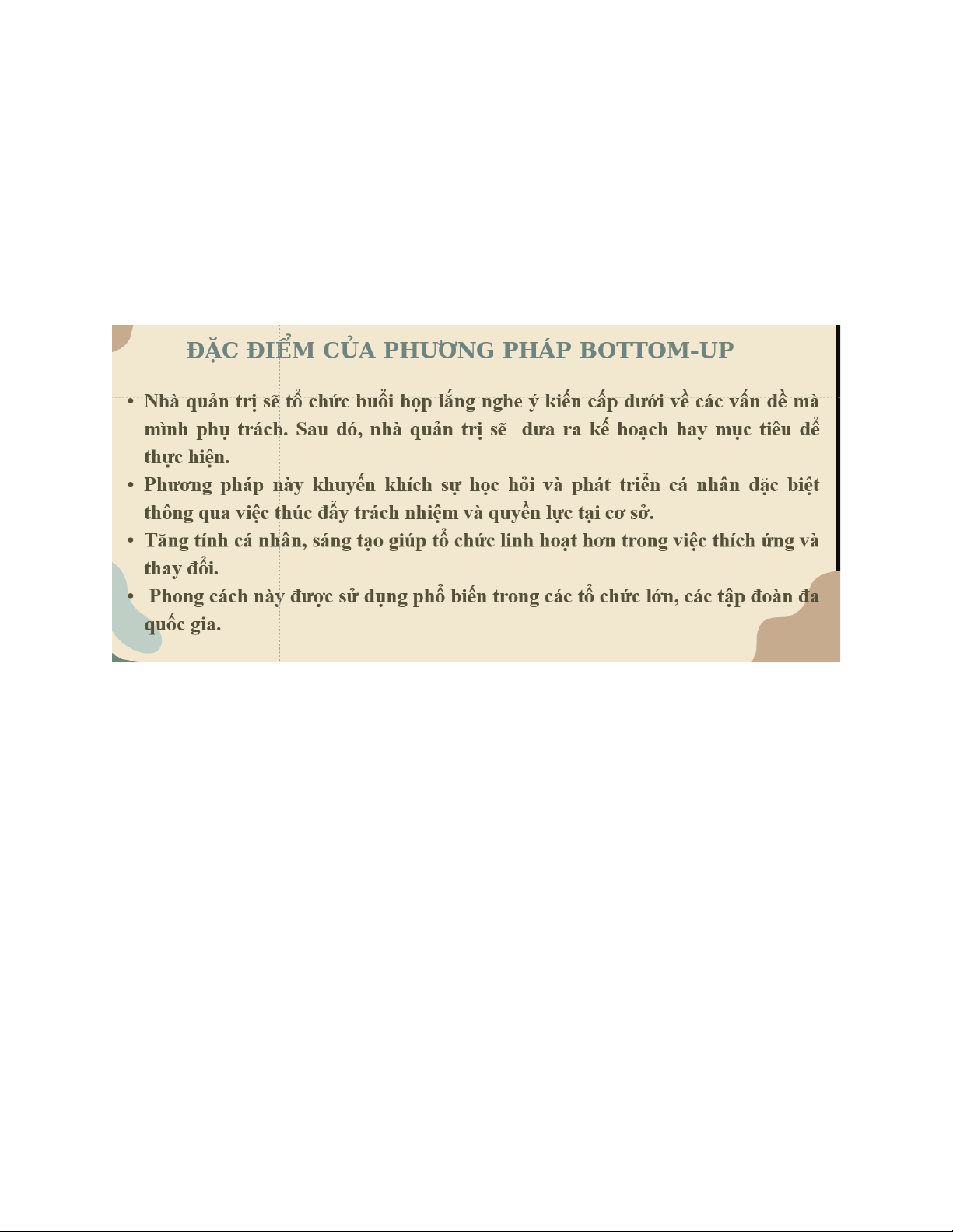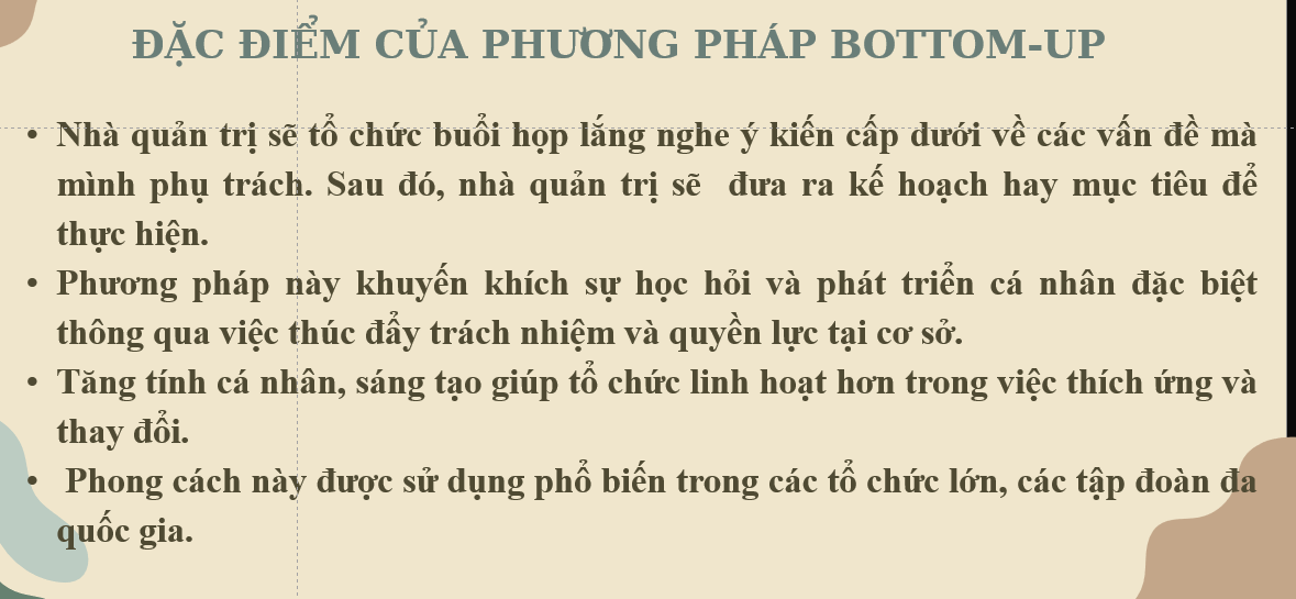 Là phương pháp lập kế hoạch dựa trên thực tế tại cơ sở, được thực hiên không chỉ bởi người quản lí cấp cao mà còn có sự thm gia của những người trực tiếp thực hiện