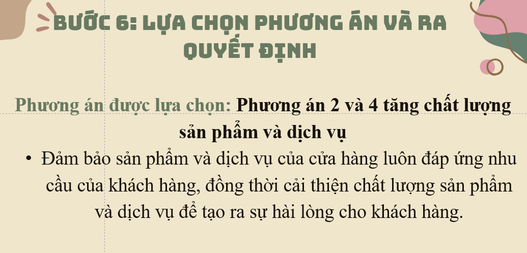 Bước 6: Lựa chọn ra phương án và ra quyết định.