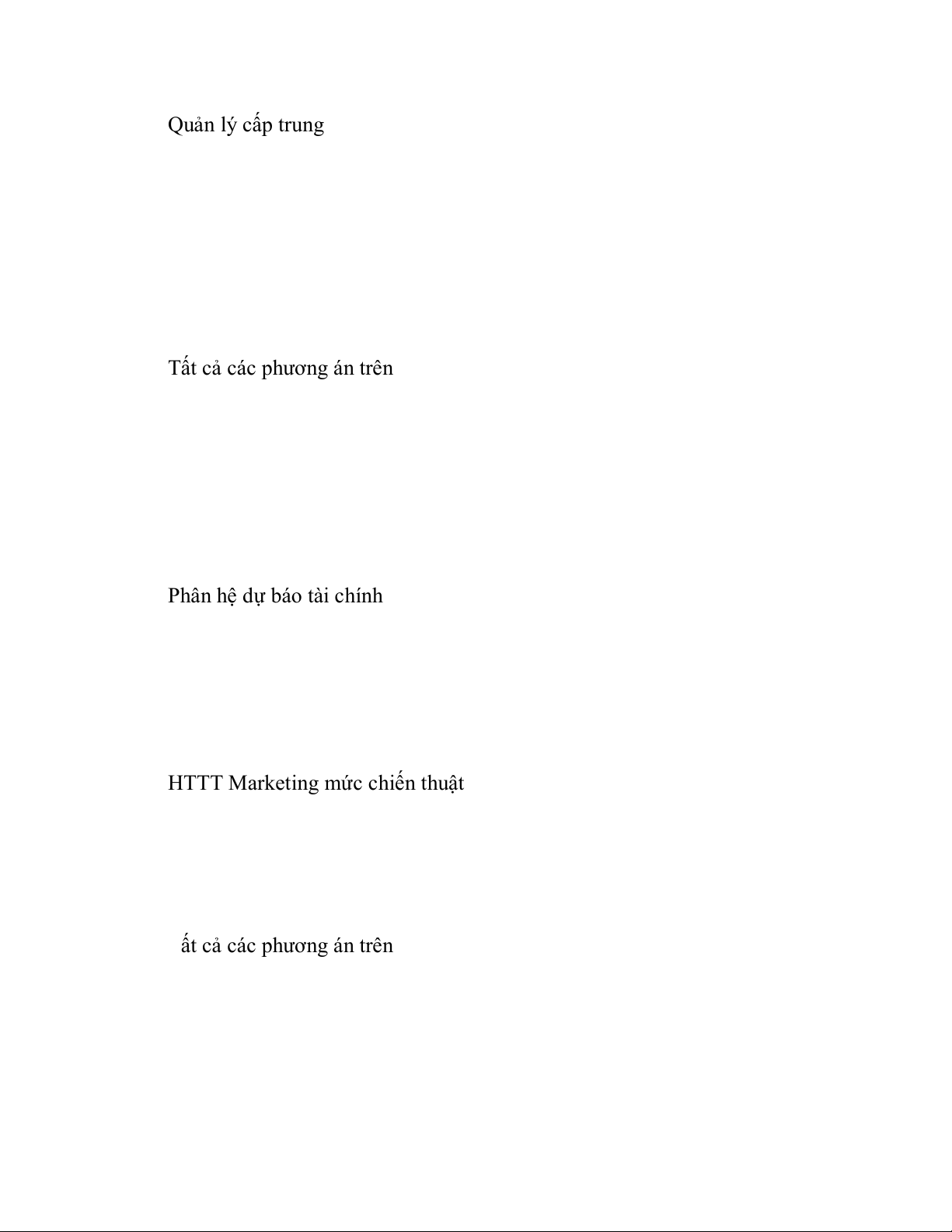 27. HTTT quản lý bán hàng, HTTT định giá sản phẩm, HTTT xúc tiền bán hàng thuộc loại nào A.