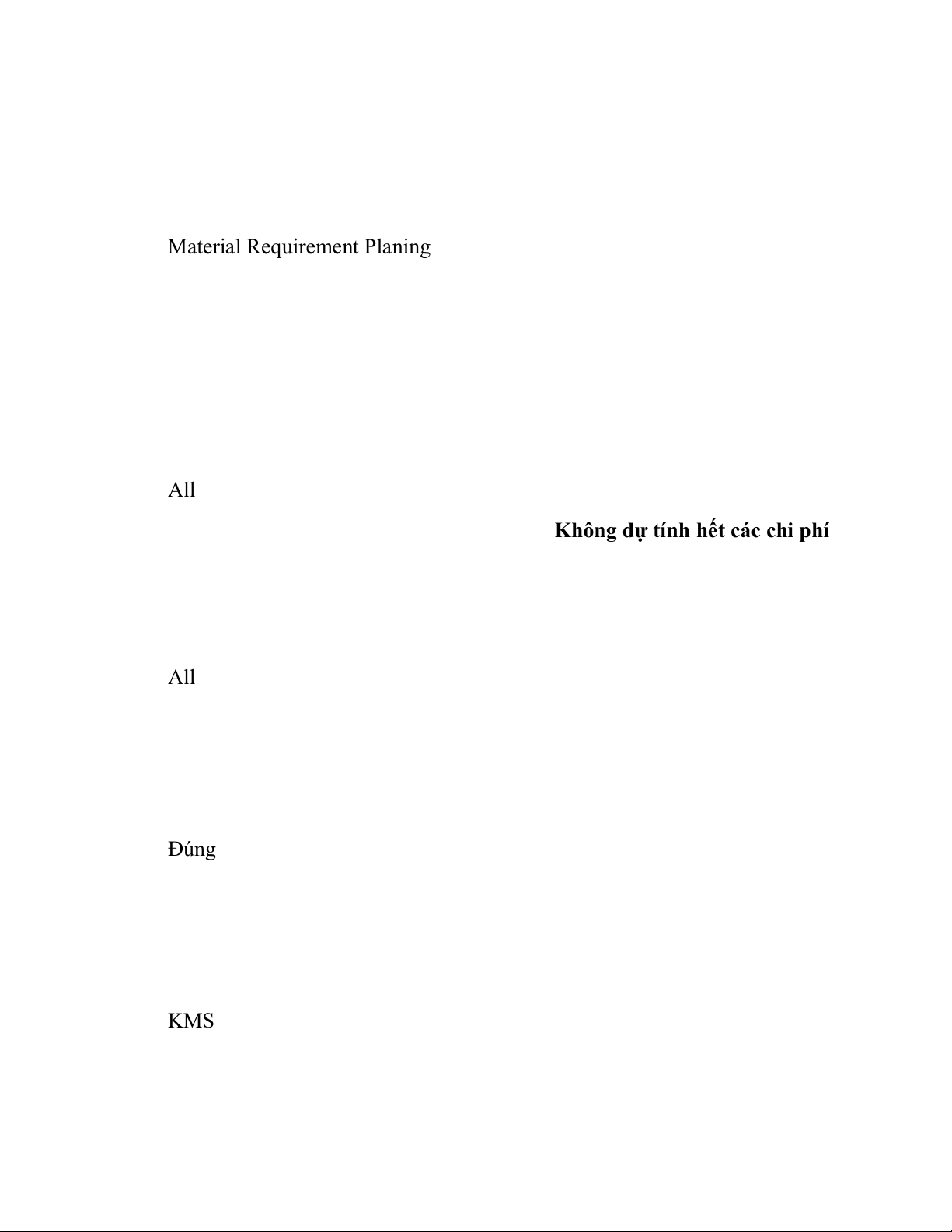 Duy trì hồ sơ đầy đủ về nhân viên hiện tại 29. MRP là A. Material Request Plan B. Material Request Production C. Material Requirement Planing
