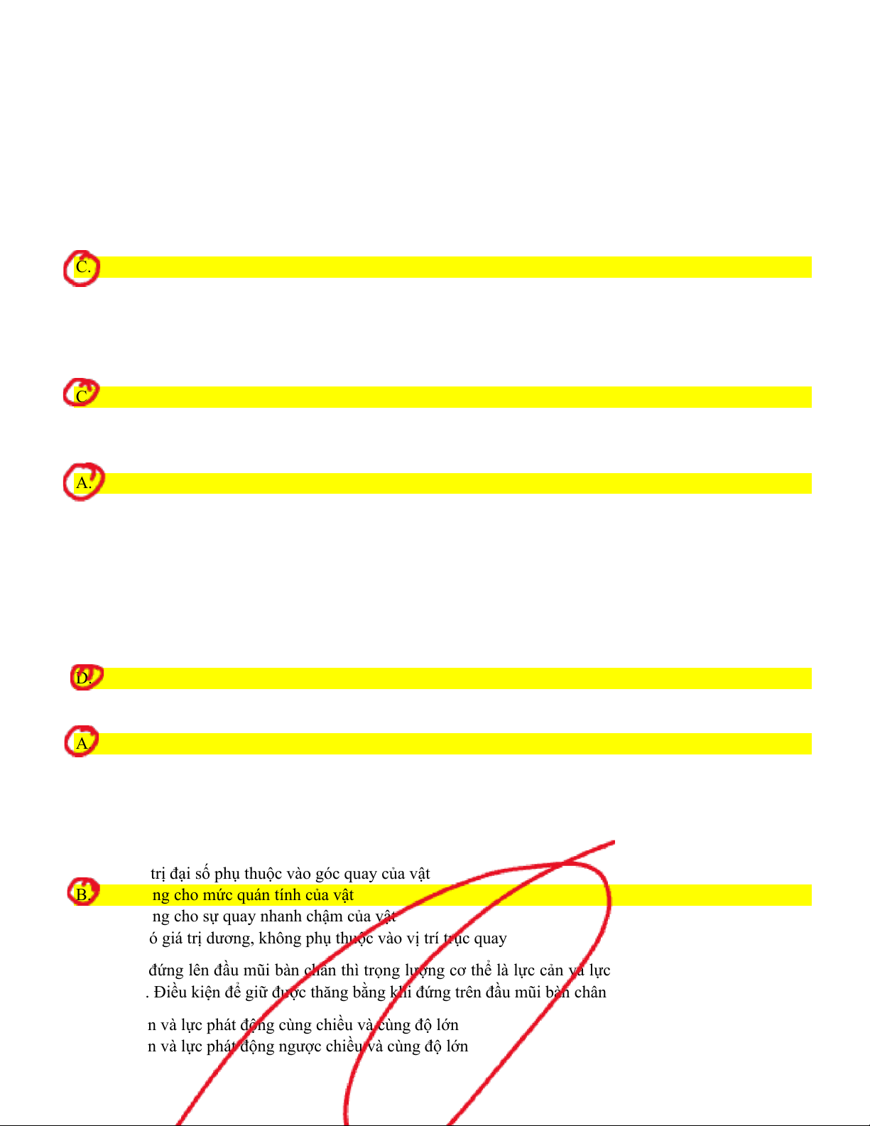 Câu 12: Một vật rắn đang quay quanh một trục với tốc độ góc 6,28 rad/s. Nếu bỗng nhiên moment lực tác dụng lên vật mất đi thì? A. Vật dừng lại ngay B. Vật đổi chiều ngay