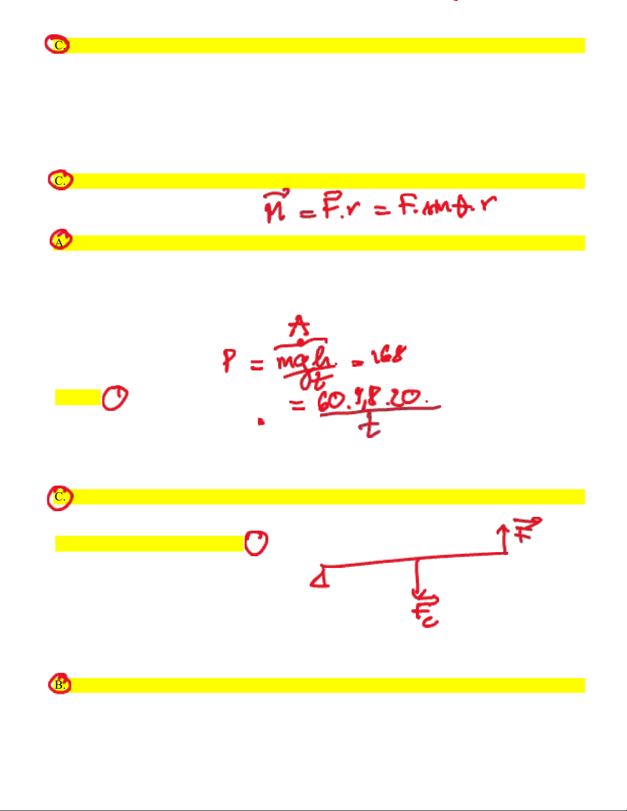khi đó là bao nhiêu? (cho g = 9,8 m/s2) A. 140w B. 152w D. 168w C. 164w Câu 9: Trong cơ thể,