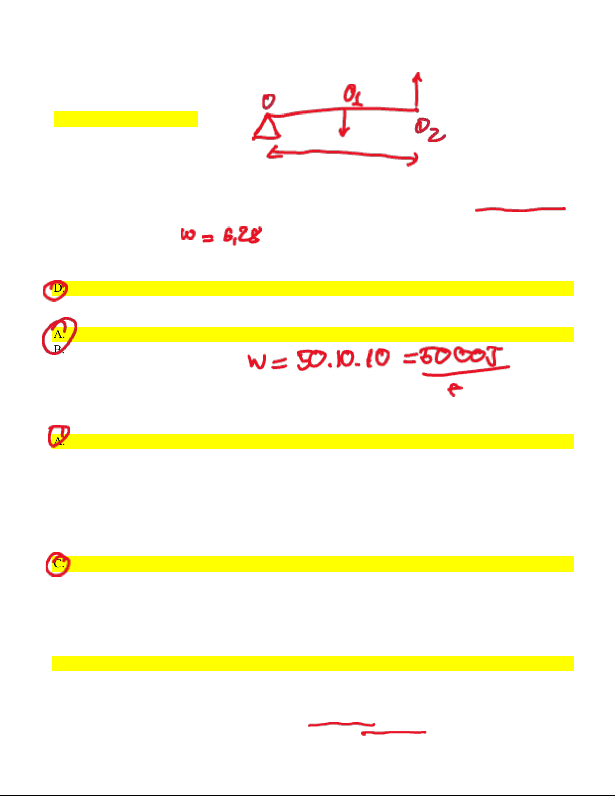 Câu 13: Một nười nặng 50kg đi thang máy lên cao 10m. Lấy g = 10 m/s2. Năng lượng của người đó: A. Tăng lên 5000J B. Giảm đi 5000J C. Không đổi D. Tăng lên 500J