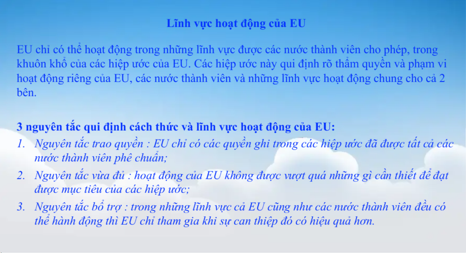 Tìm hiểu cộng đồng Châu Âu - Liên minh Châu Âu, lĩnh vực hoạt động