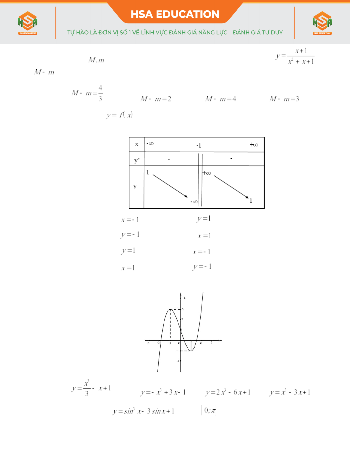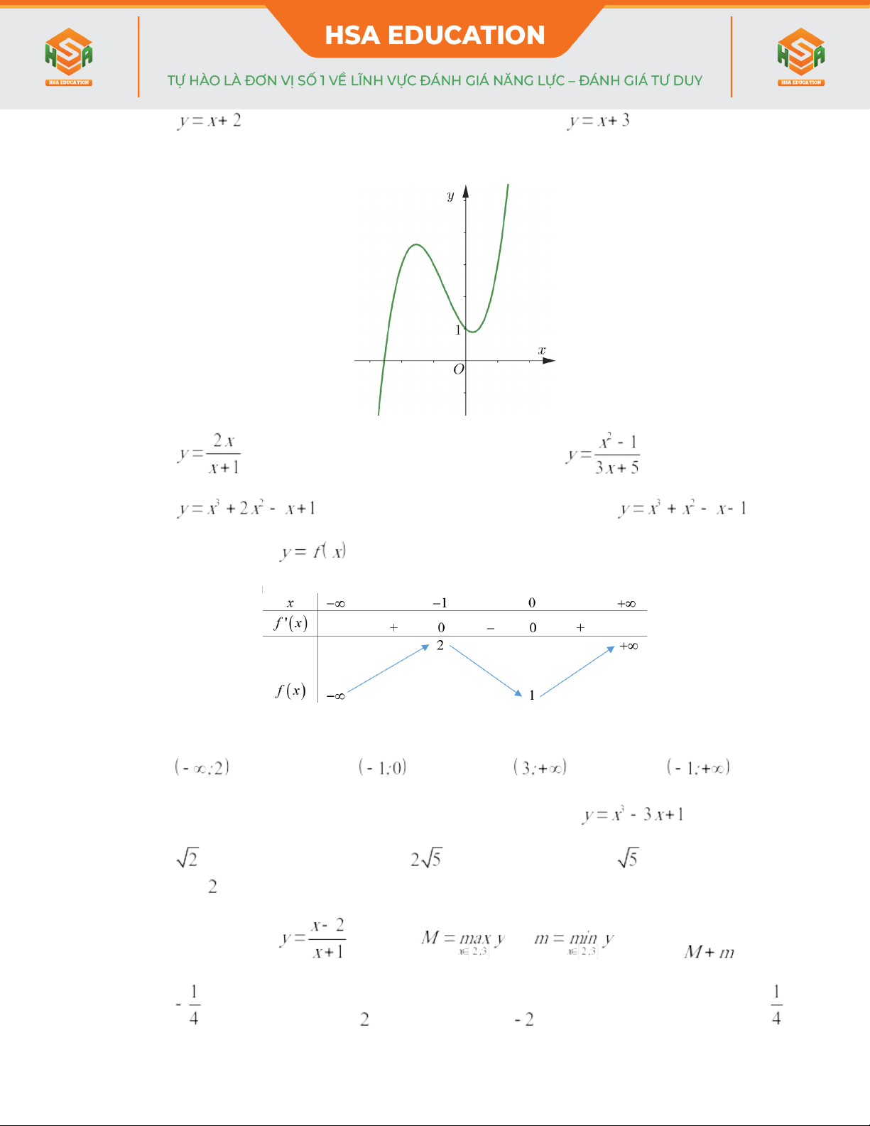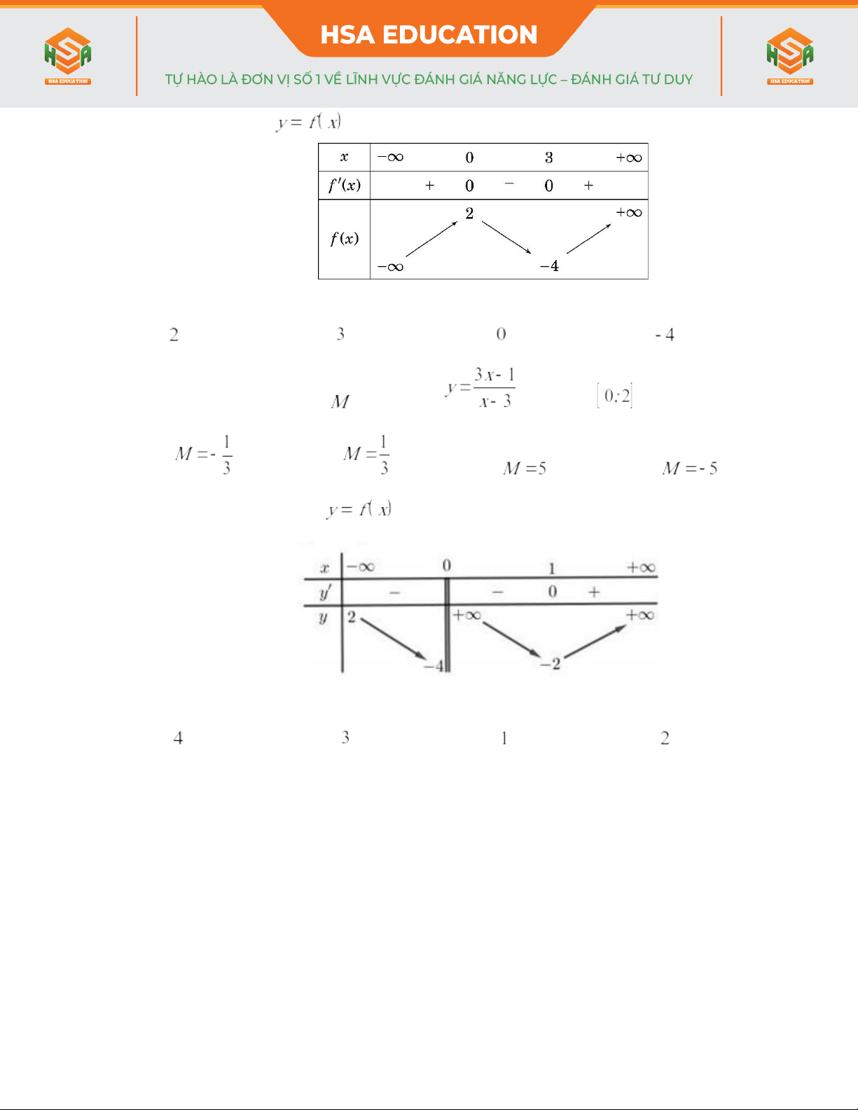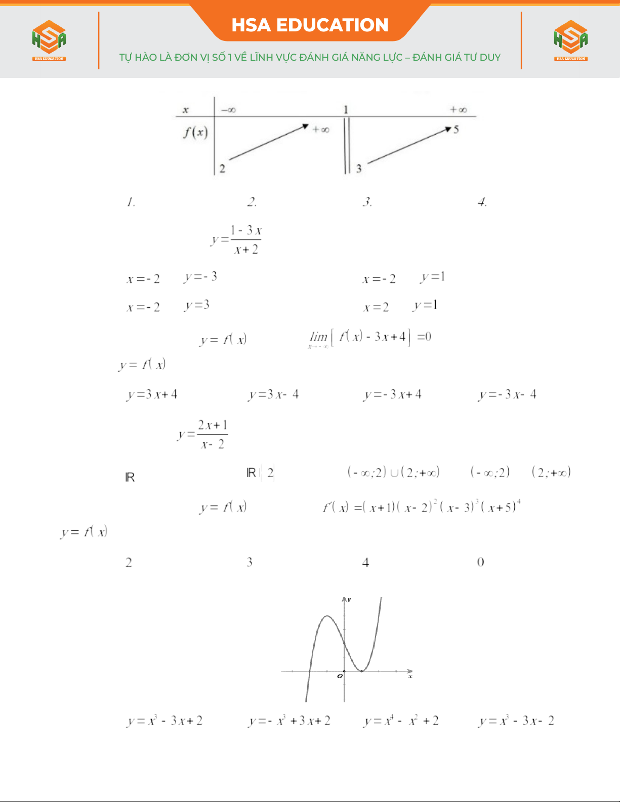 - Hàm số nào sau đây có bảng biến thiên như hình bên dưới?