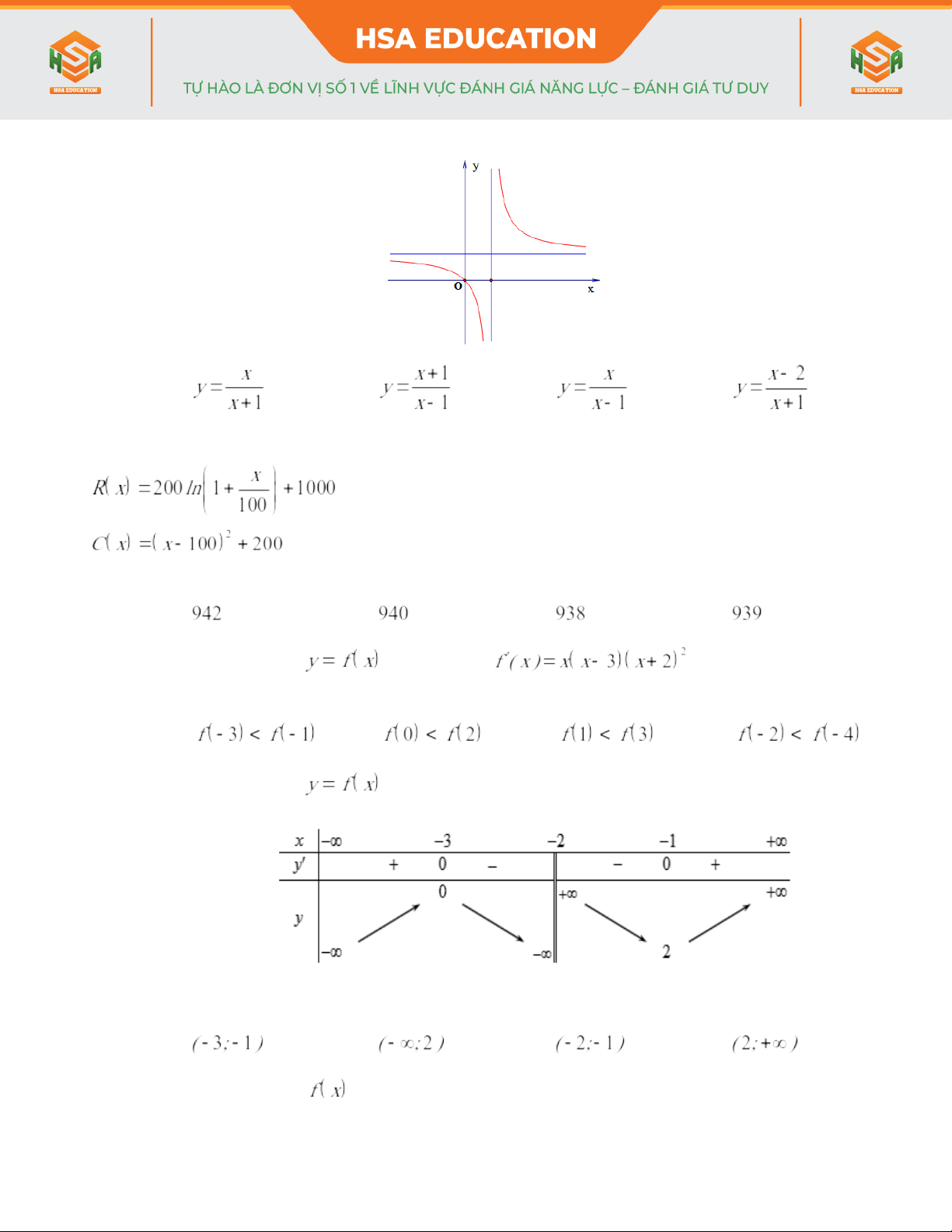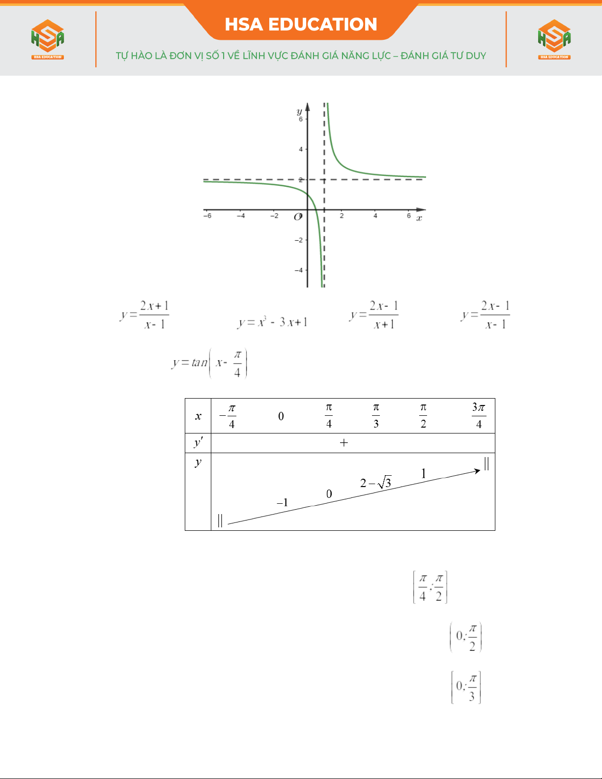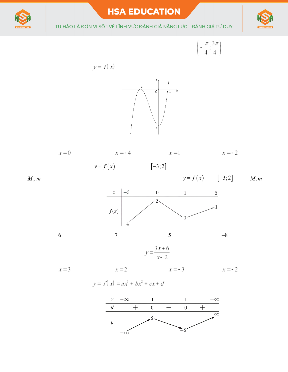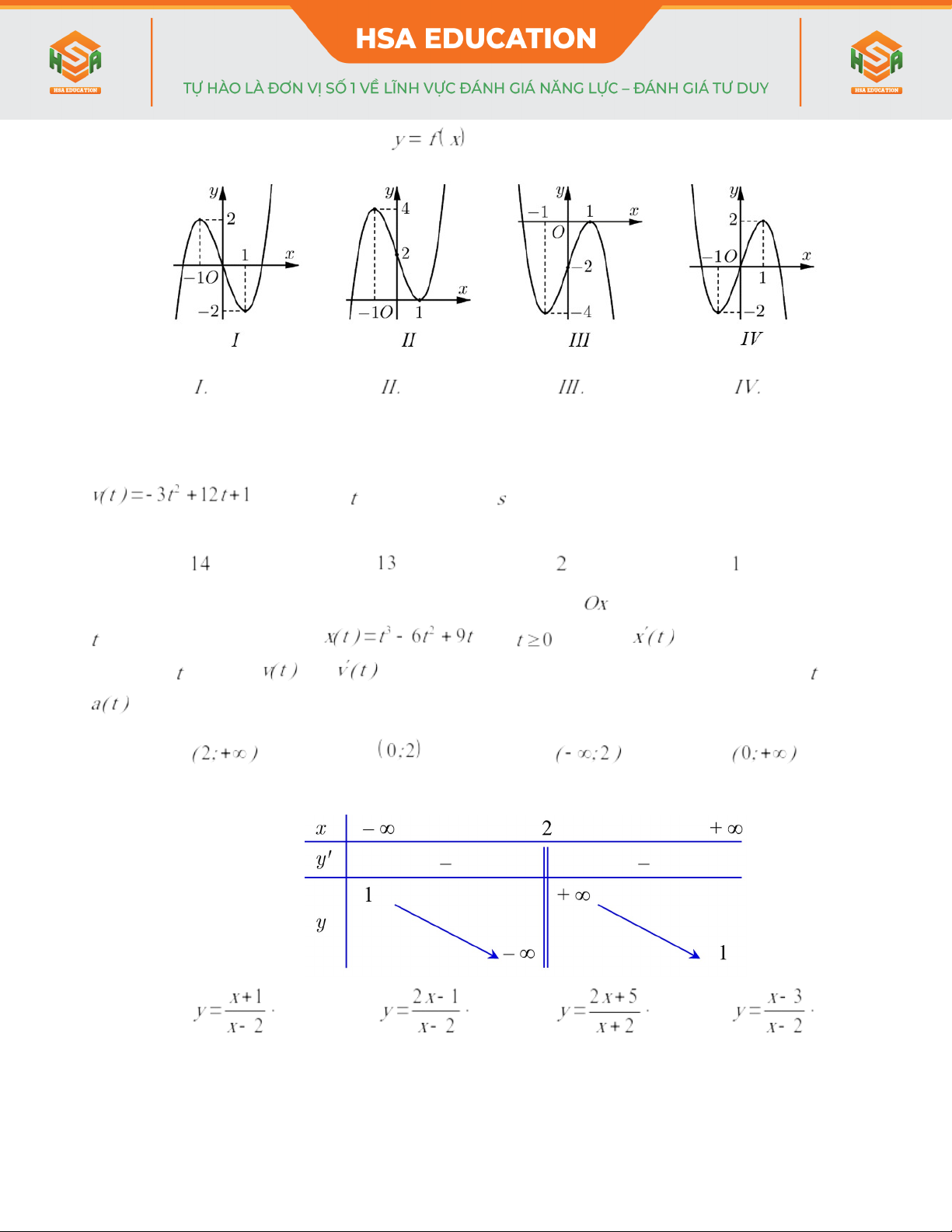 - Hàm số nào sau đây có bảng biến thiên như hình bên dưới?