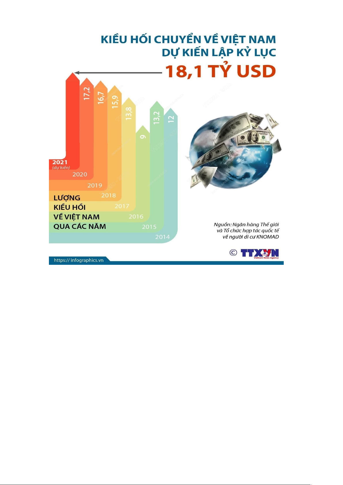 - Tổng lượng kiều hối về Việt Nam năm 2022 đạt gần 19 tỷ USD