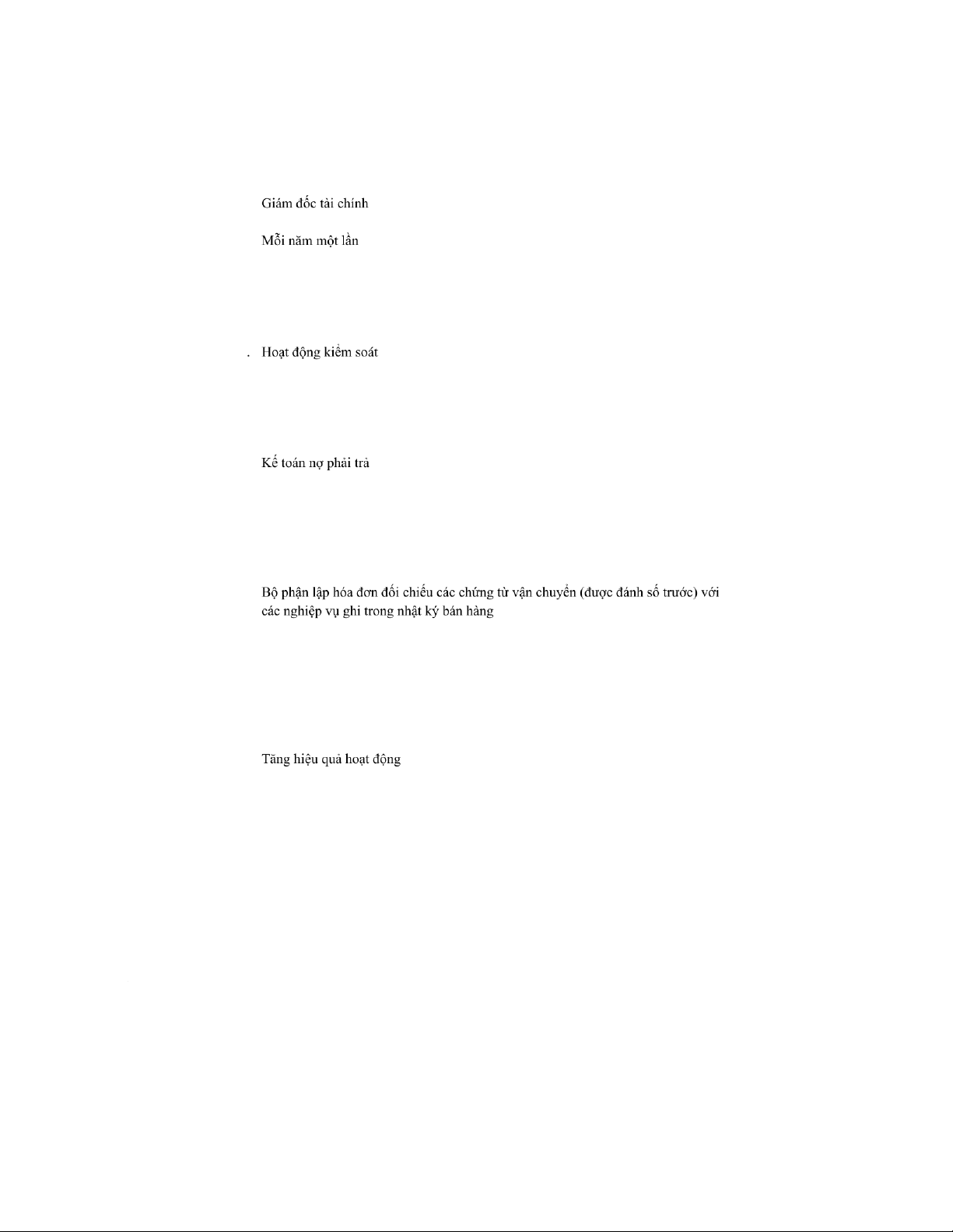 d. Nhân viên phòng kế toán kiểm soát việc gửi thư nhắc nợ cho khách hàng mỗi tháng