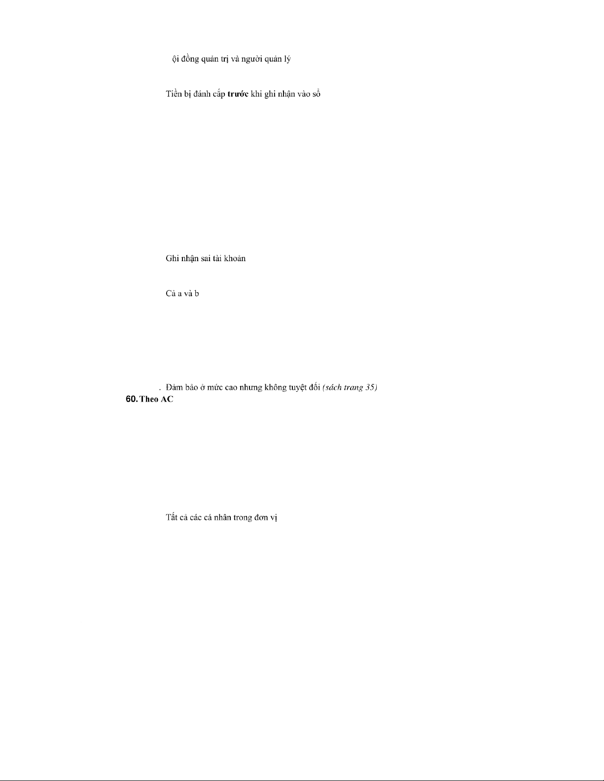 116. Tài sản cố định mua nhưng không sử dụng được, điều này ảnh hưởng tới: A. Tính tuân thủ. B. Cả 3 câu.