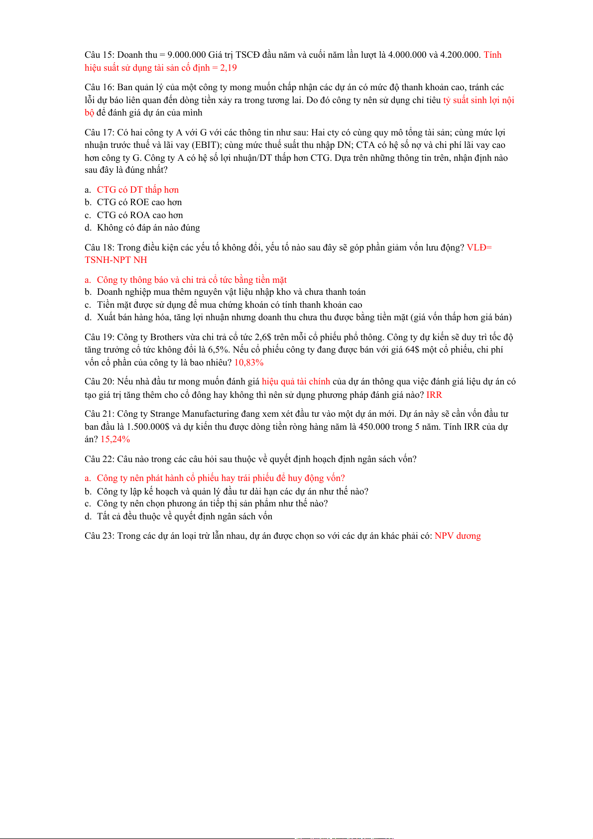Câu 19: Công ty Brothers vừa chi trả cổ tức 2,6$ trên mỗi cổ phiếu phổ thông. Công ty dự kiến sẽ duy trì tốc độ