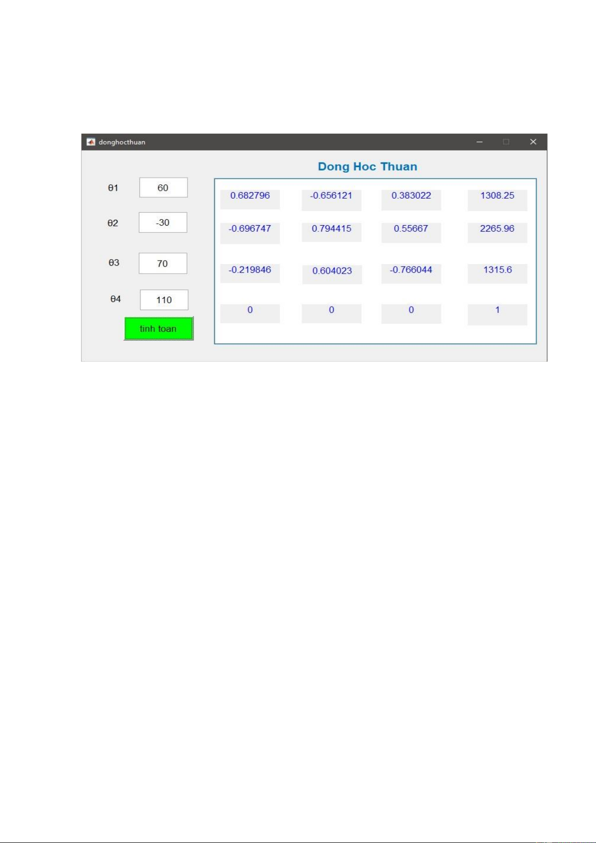 𝑞𝐵 = [𝜃1𝐵, 𝜃2𝐵, 𝜃3𝐵, 𝛳𝜃4𝐵 ]𝑇 = [30, 45, −90, −30]𝑇 (5.6) trong thời gian t = 5s. lOMoAR cPSD| 45740413 Từ đây ta có được: