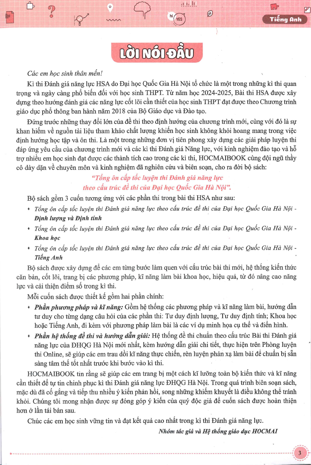 Tổng ôn cấp tốc Tiếng Anh luyện thi đánh giá năng lực theo cấu trúc đề thi của Đại học quốc gia Hà Nội | Sách Tiếng Anh . Tài liệu giúp bạn tham khảo, ôn tập và đạt kết quả cao. Mời đọc đón xem!