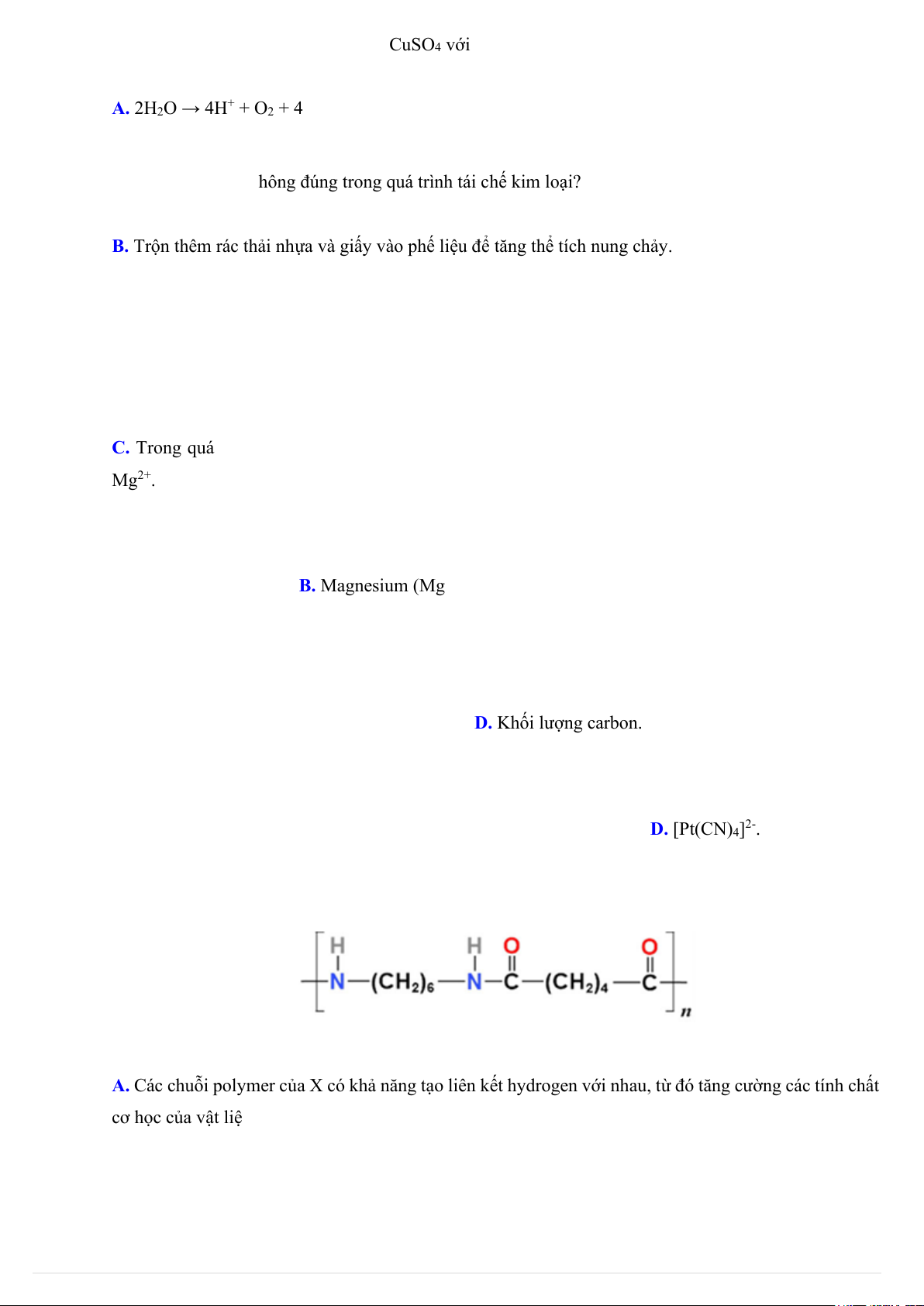 D. X được điều chế từ hexamethylenediamine và adipic acid bằng phản ứng trùng hợp. 2 | T Y H H