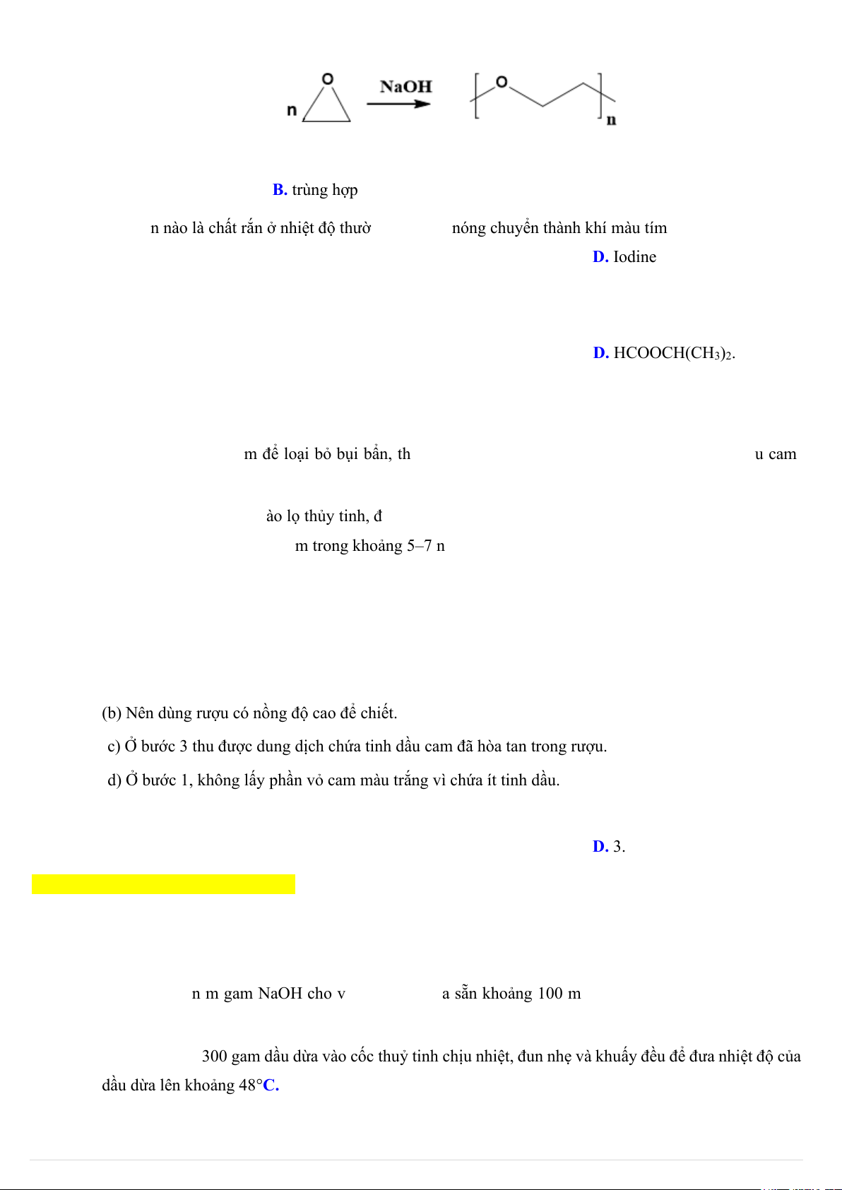 Câu 15: Poly(ethylene oxide) được tổng hợp theo phương trình hoá học sau:
