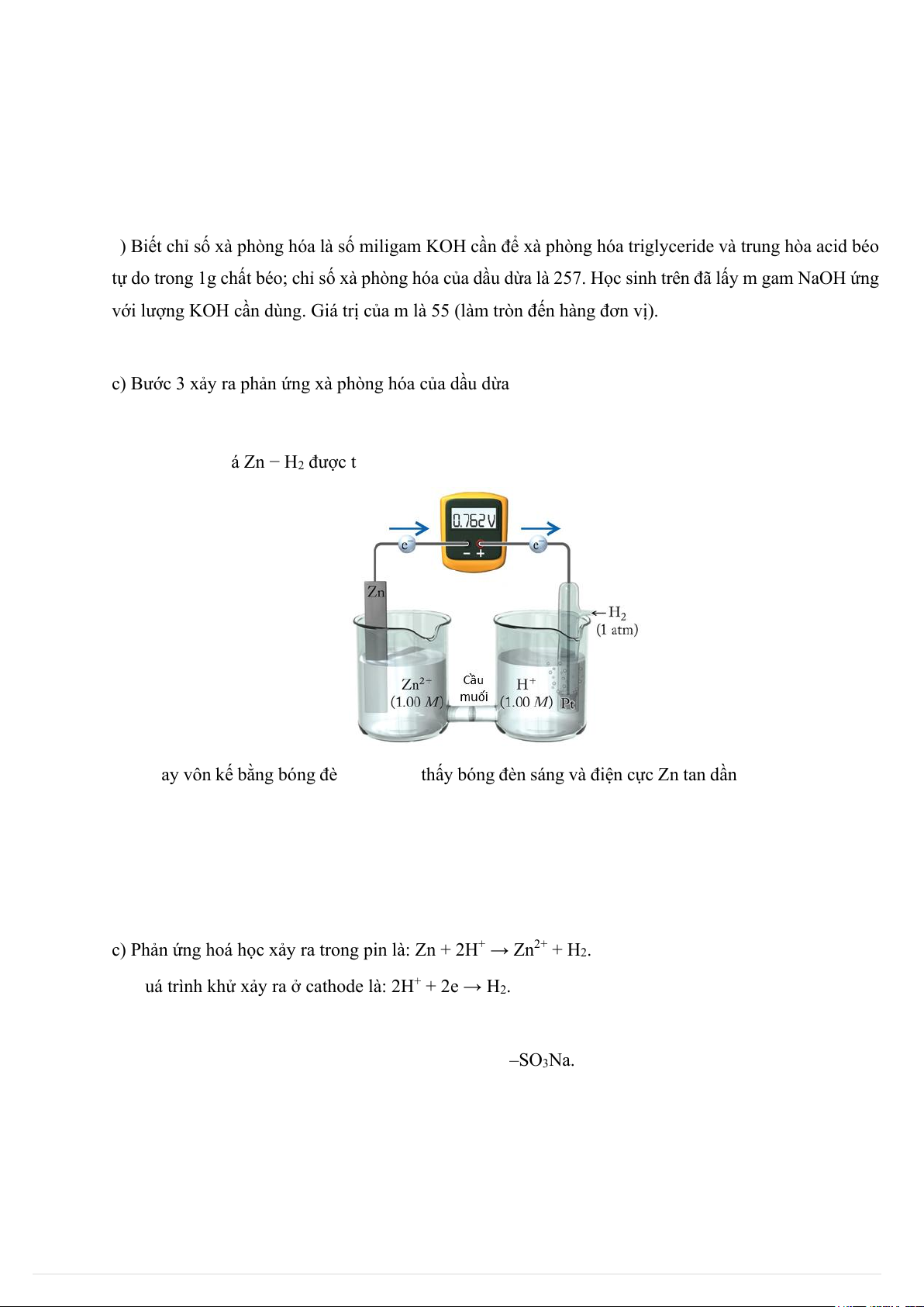 Câu 2: Một pin điện hoá Zn − H2 được thiết lập ở các điều kiện như hình vẽ sau (vôn kế có điện trở rất lớn).