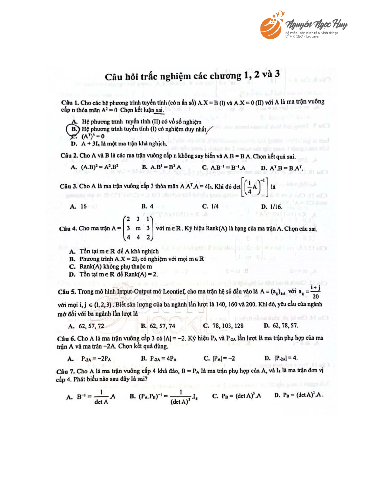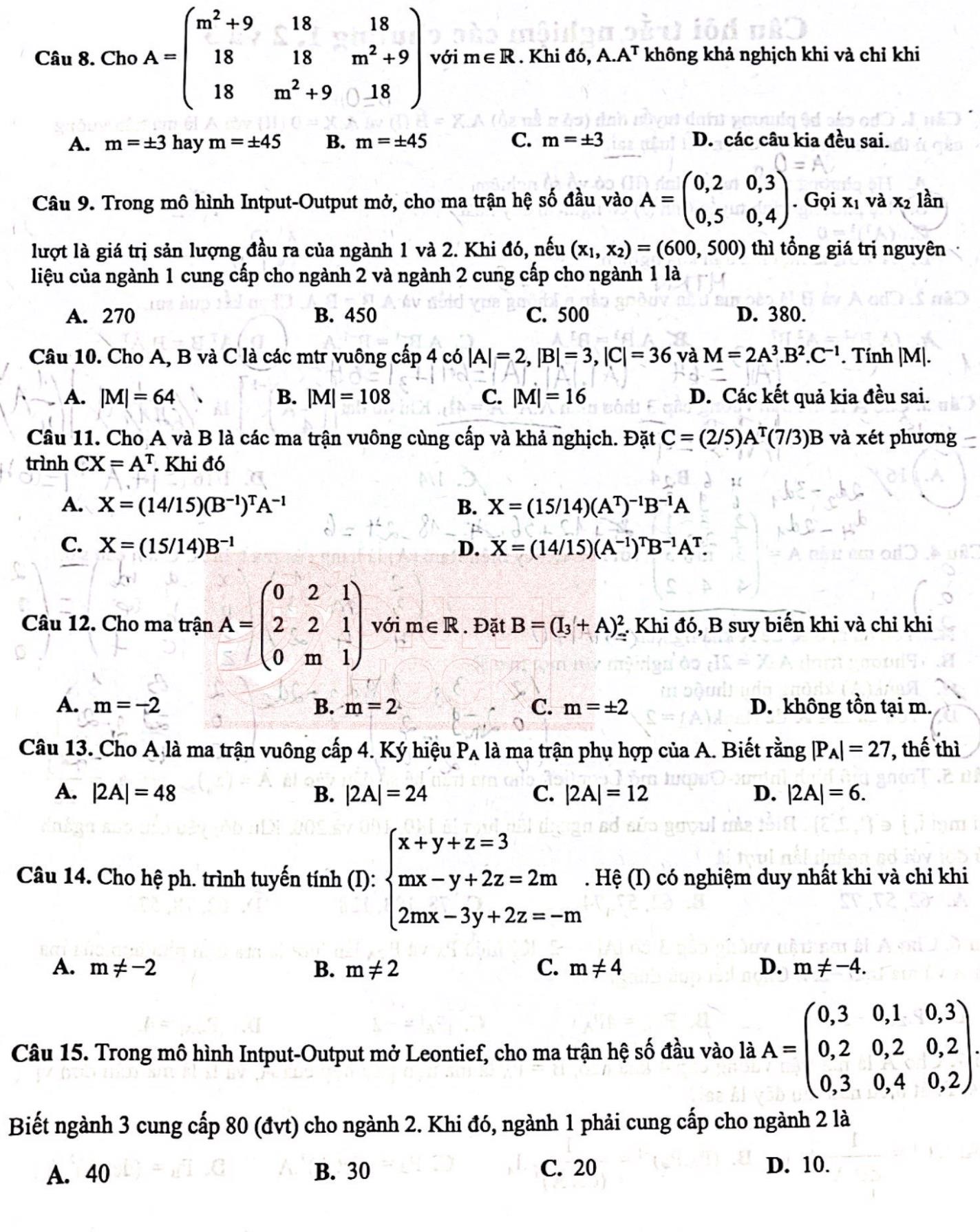 Môn: Toán Cao Cấp (KTHCM) 189 tài liệu