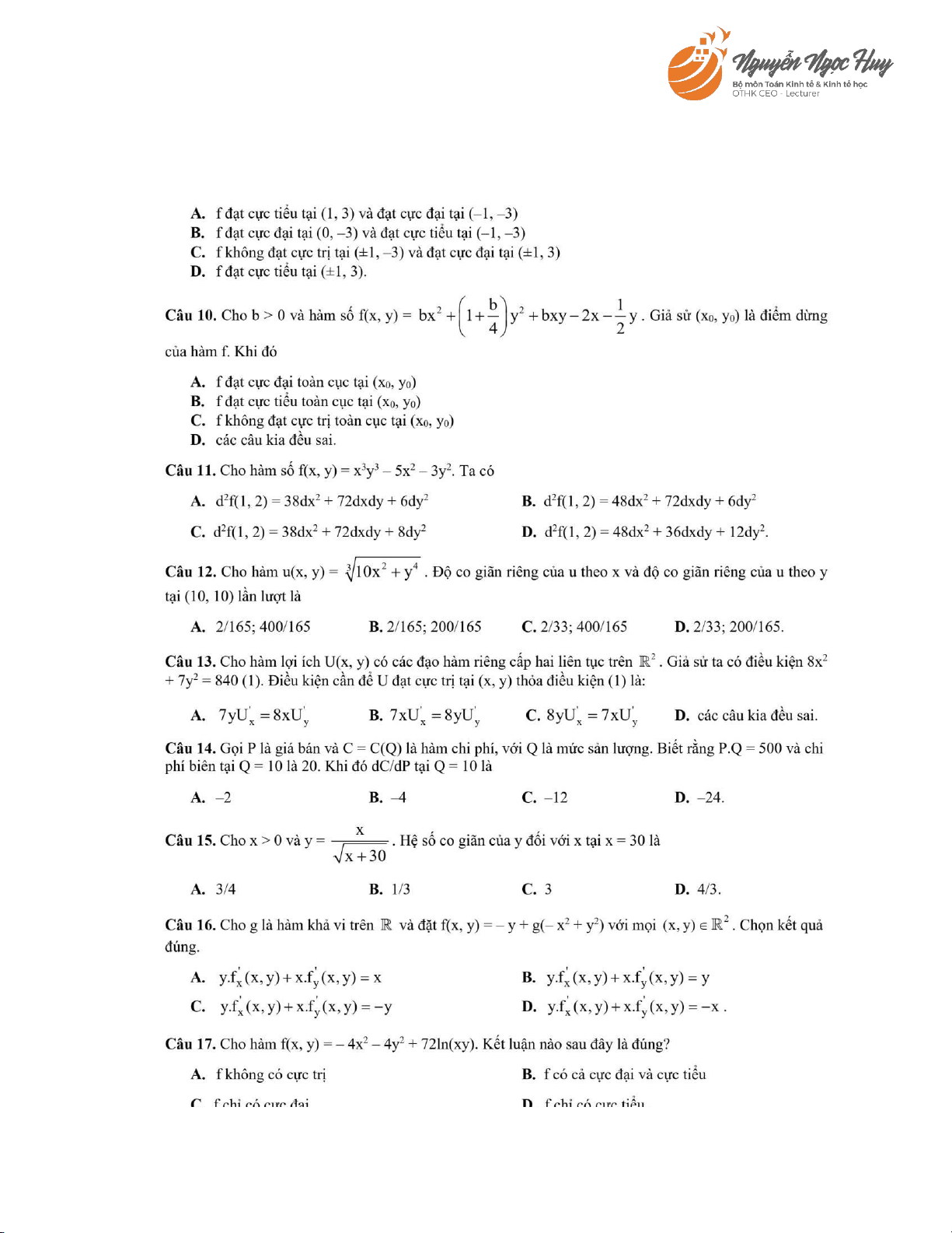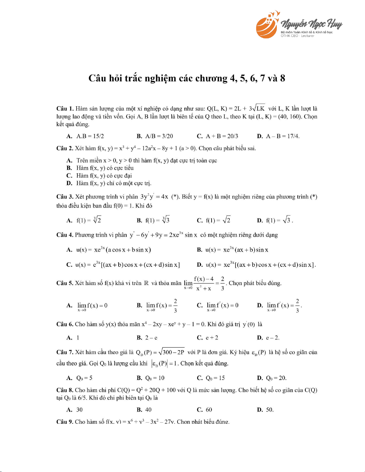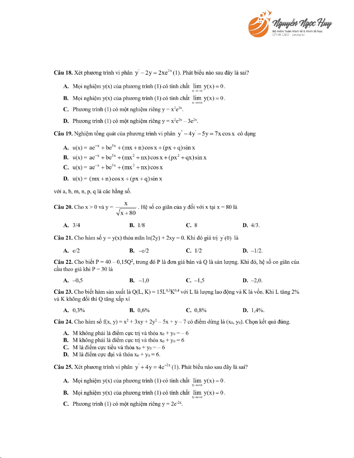 TỔNG ÔN TOÀN BỘ KIẾN THỨC PHẦN 2 MÔN TOÁN CAO CÂP |Trường Đại học Kinh tế Thành phố Hồ Chí Minh