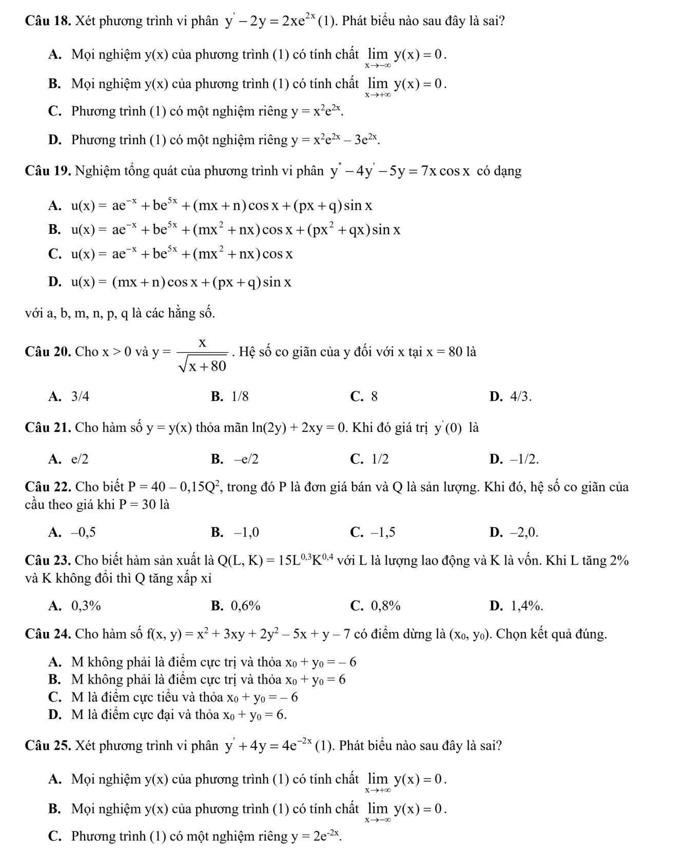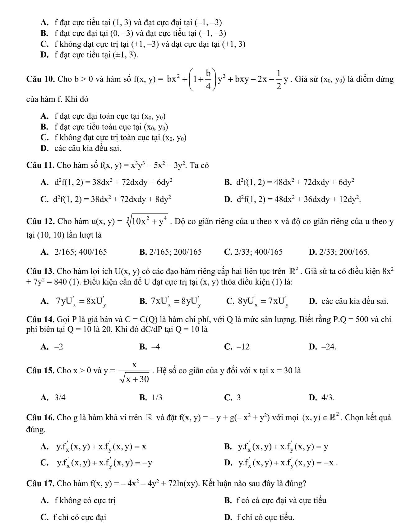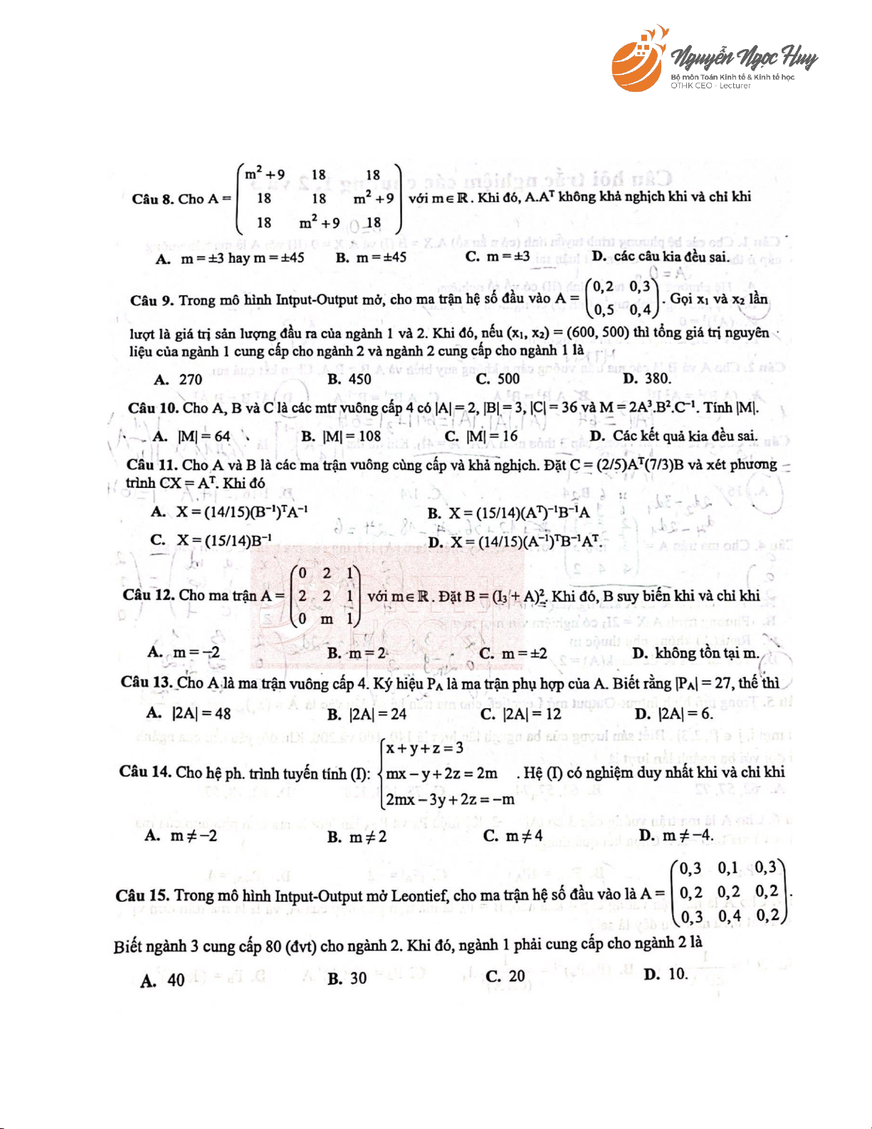 TỔNG ÔN TOÀN BỘ KIẾN THỨC PHẦN 2 MÔN TOÁN CAO CÂP |Trường Đại học Kinh tế Thành phố Hồ Chí Minh