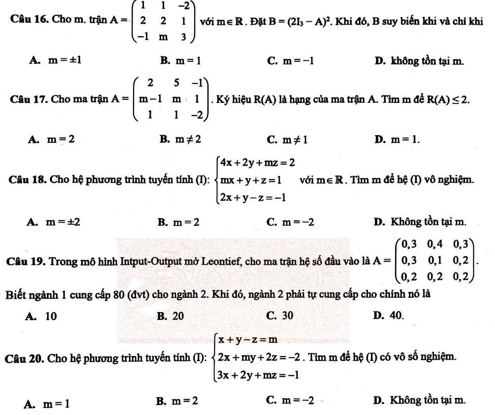 Nội dung ôn tập chương 2 | Môn toán cao cấp