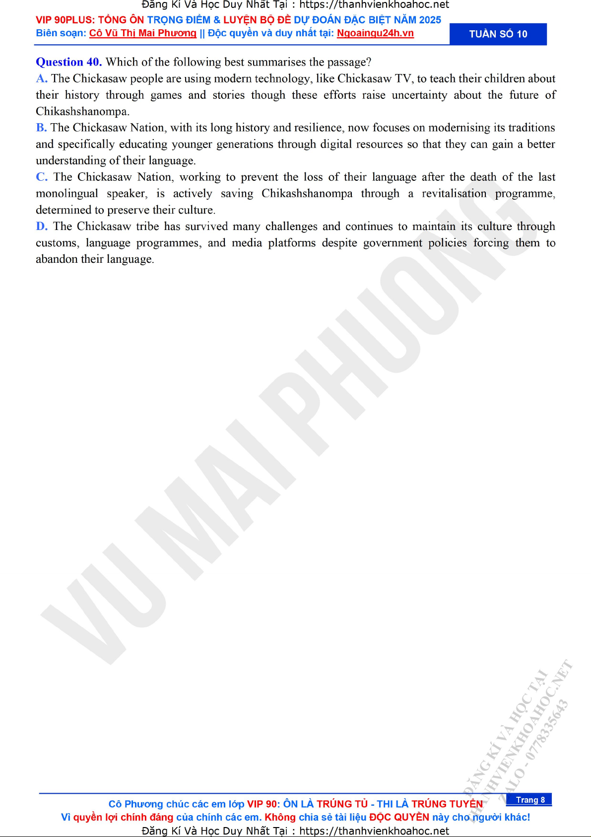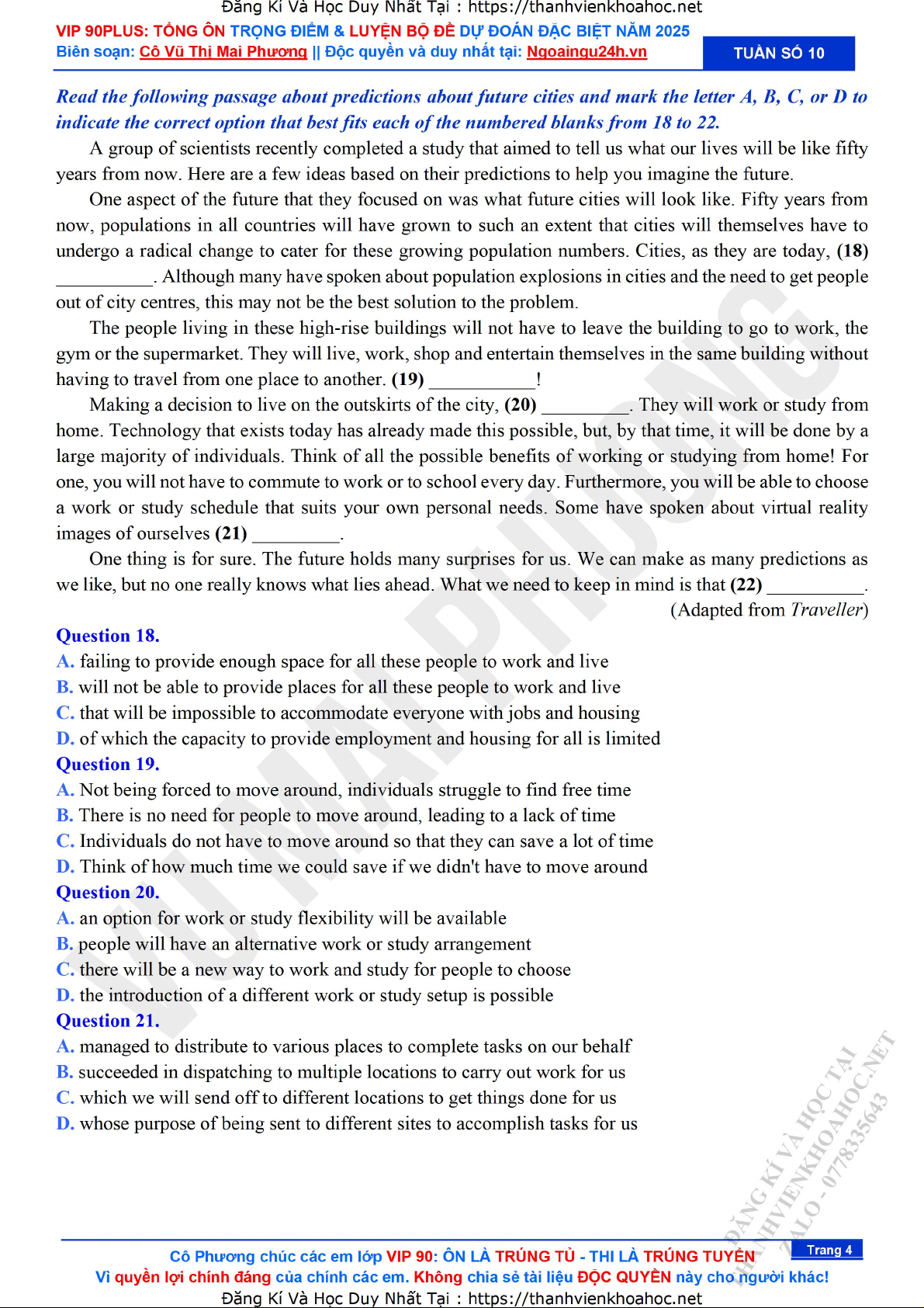 Tổng ôn trọng điểm bộ câu hỏi dễ trúng tũ & bộ đề dự đoán đặc biệt 2025 - Đề số 4