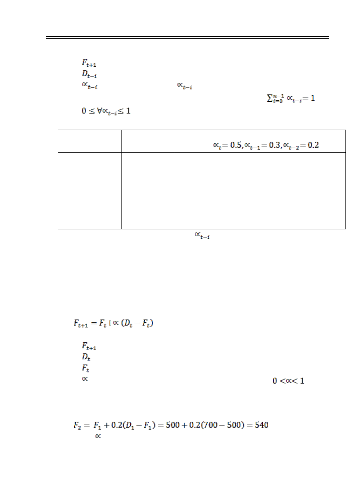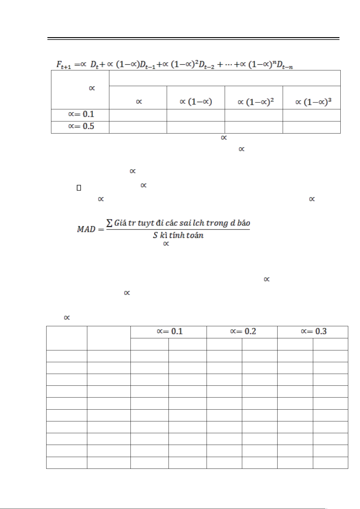 thực tế ở kỳ trước và mức dự báo kỳ trước. Mức dự báo tính theo công thức sau: Trong đó: -