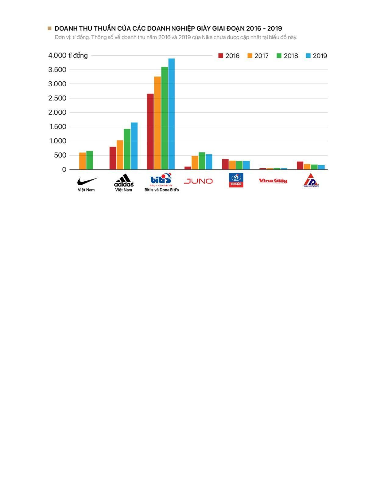 năm 2016 - 2019, đứng thứ 4 so với các thương hiệu giày lớn khác tại Việt Nam.