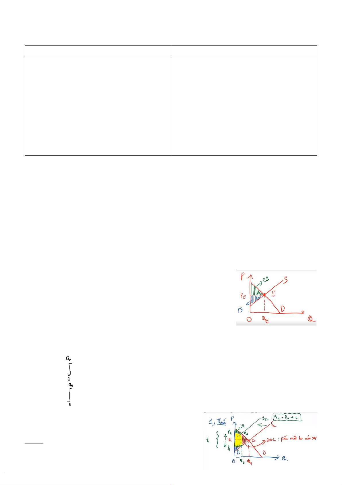 + các biện pháp của chính phủ (thuế, trợ cấp, giá + NSB max = CS + PS trần, sàn) + Qe: điểm cân bằng + NSB kh max, có DWL + Điểm cân bằng Pareto + ngoại ứng + hàng hóa công cộng