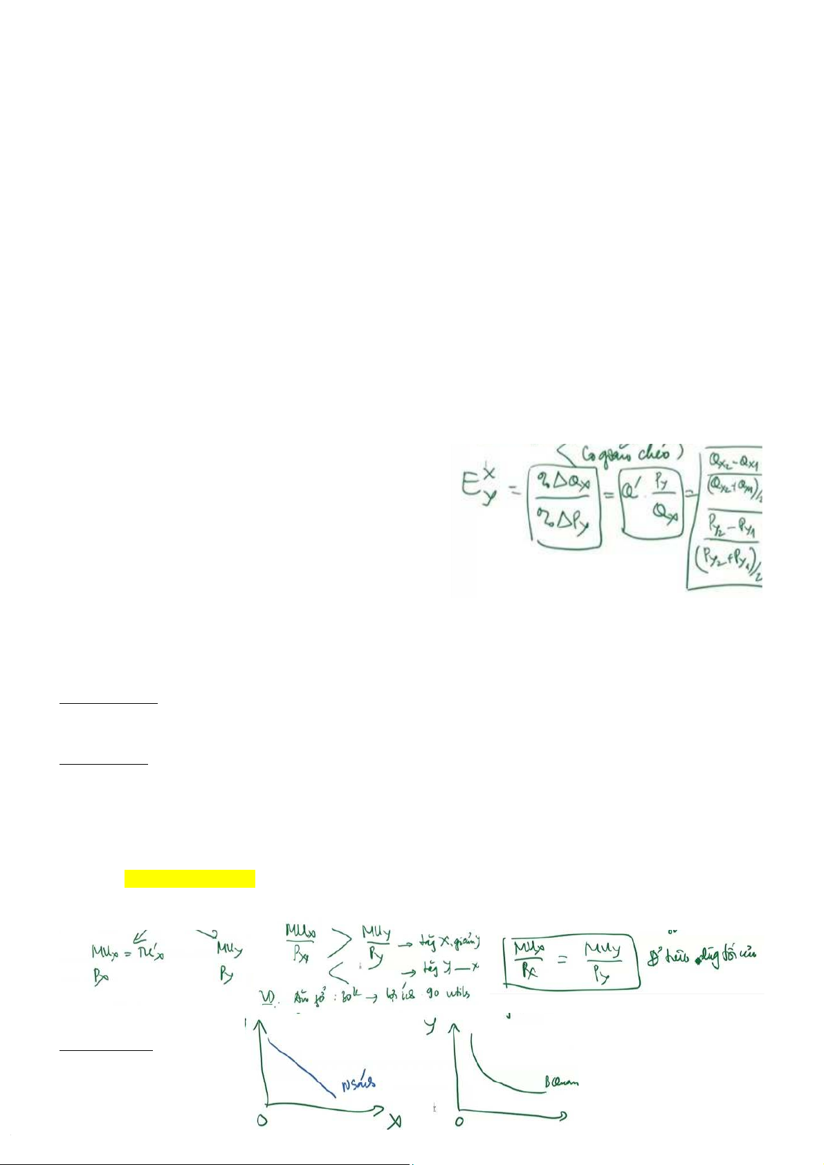MU = P => điểm tiêu dùng tối ưu => Umax 2. Mua 2 hàng hóa (X; Y)