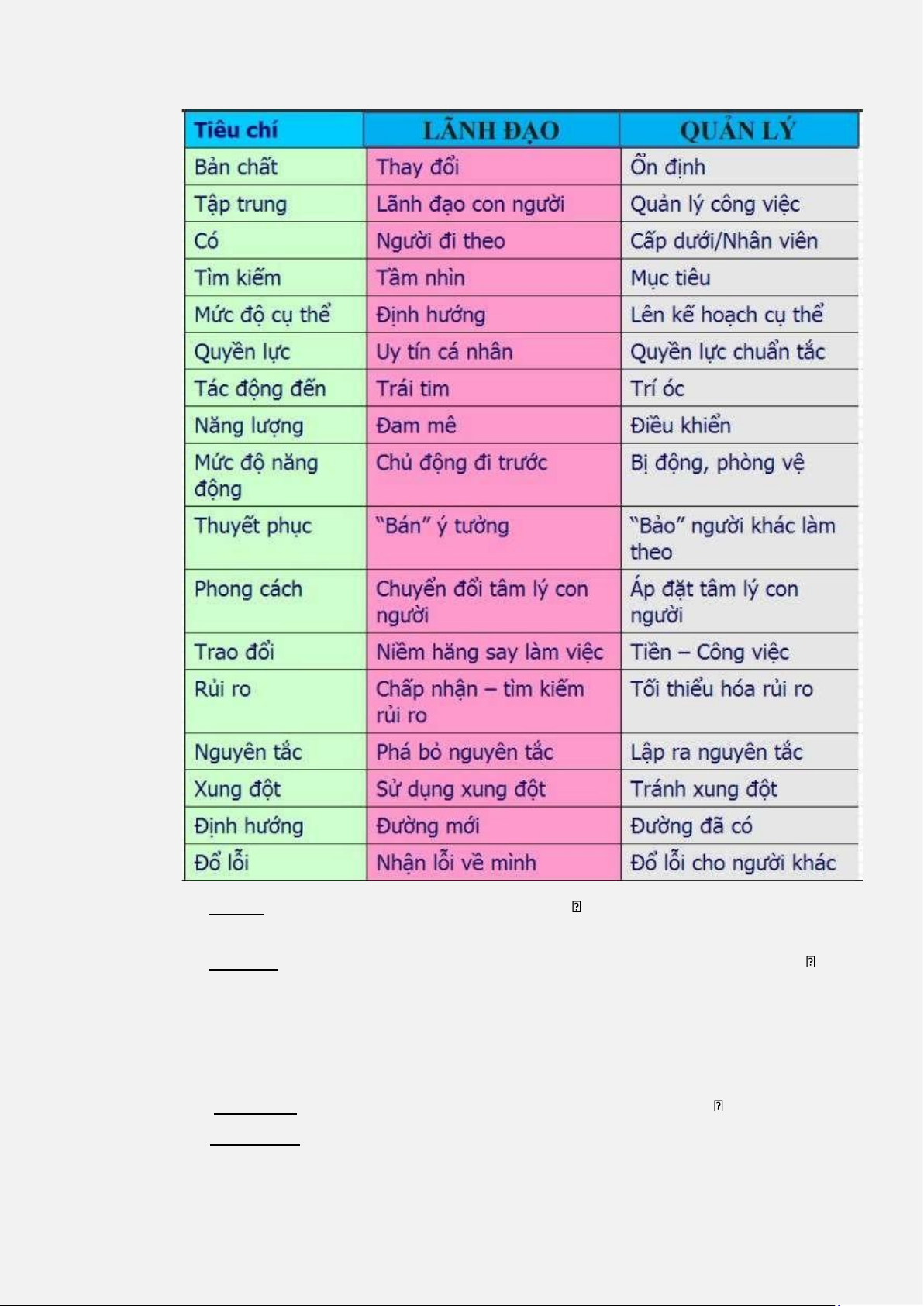 2. Phân biệt lãnh đạo và quản lí