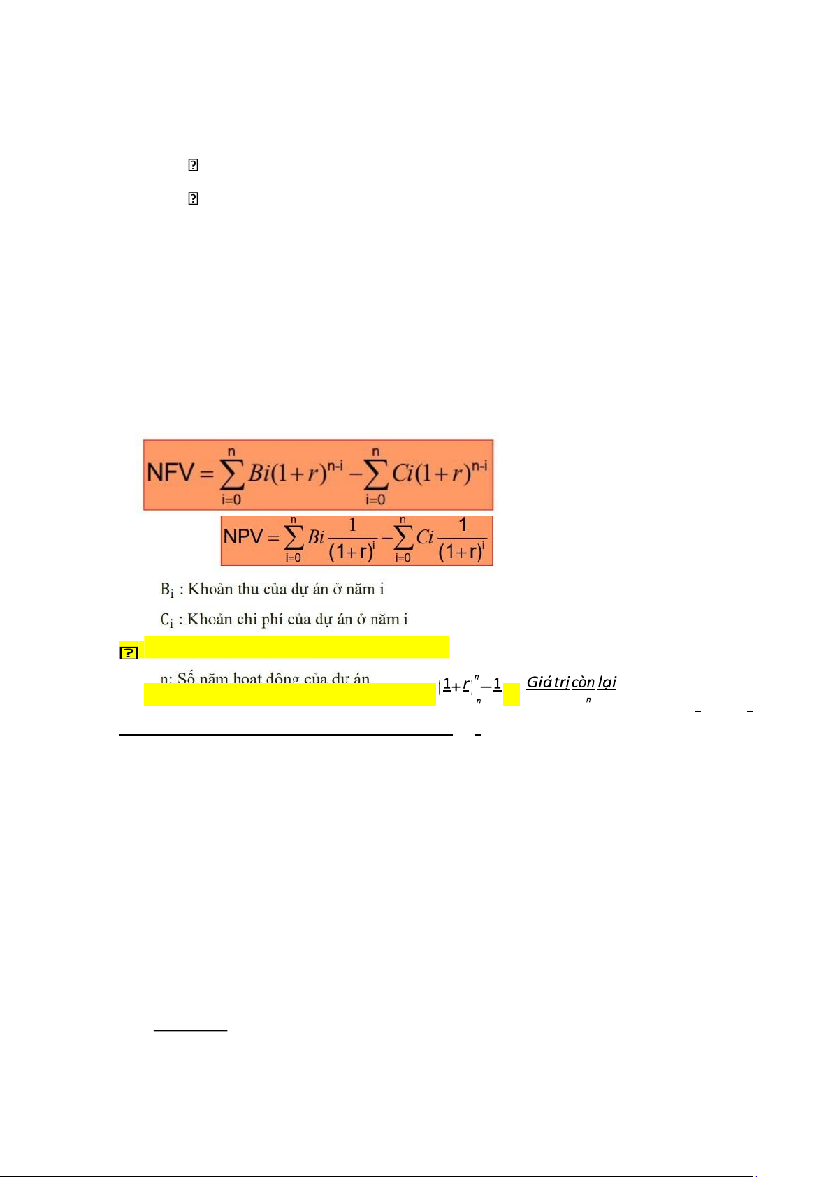 + Dòng tiền tệ ròng: Dòng chênh lệch giữa các khoản thu và chi của dự án
