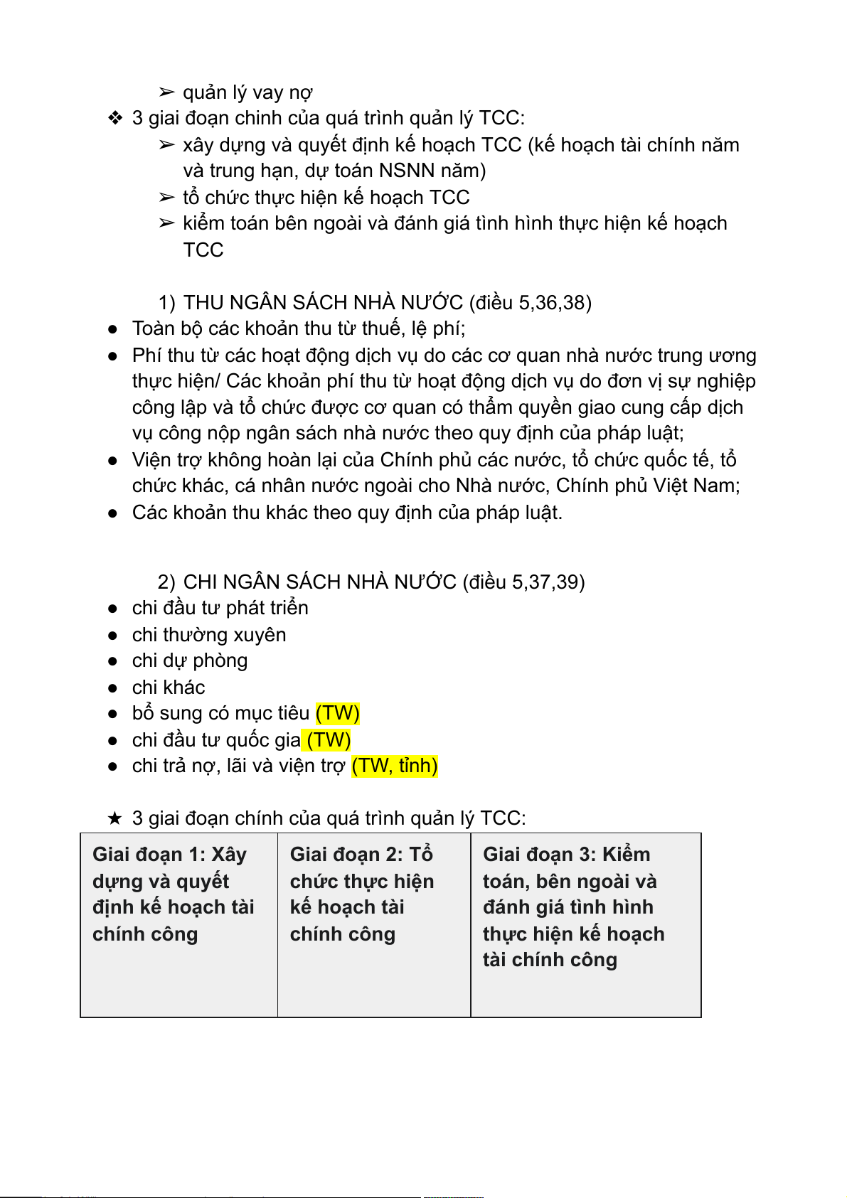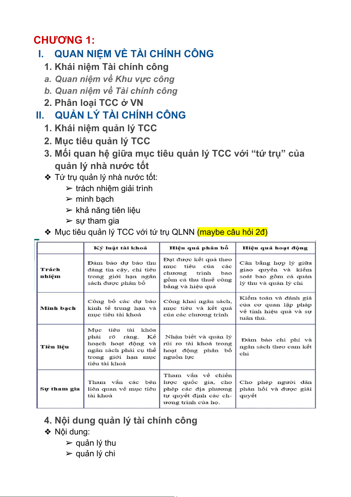 ❖ Mục tiêu quản lý TCC với tứ trụ QLNN (maybe câu hỏi 2đ)