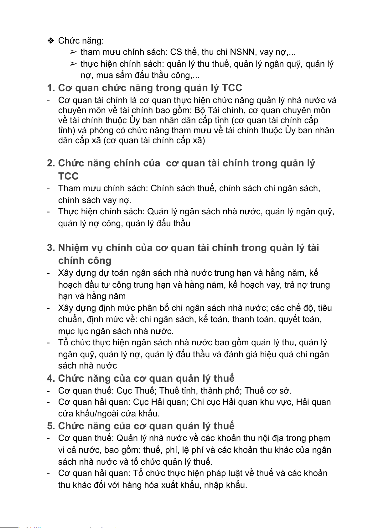 ❖ Cơ quan có chức năng quản lý TCC: bộ tài chính, cơ quan tài chính