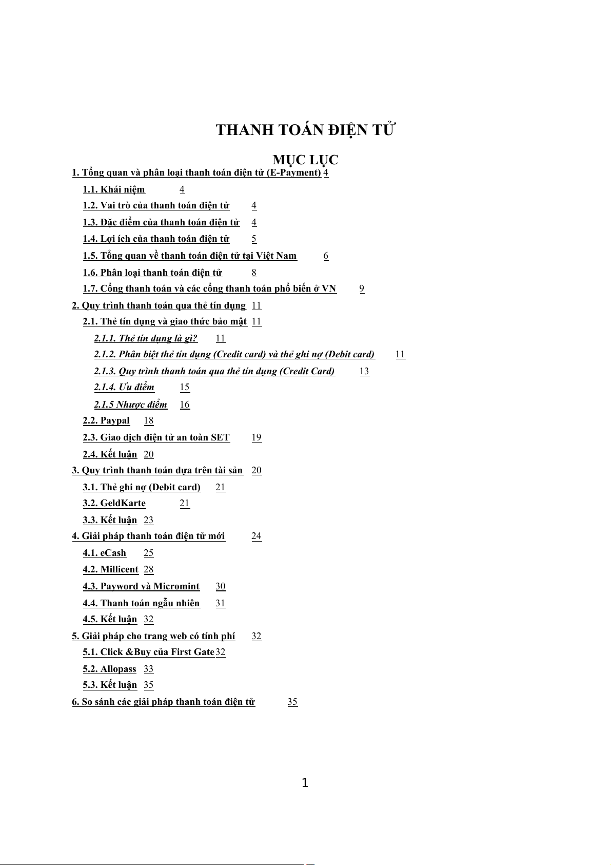THANH TOÁN ĐIỆN TỬ MỤC LỤC