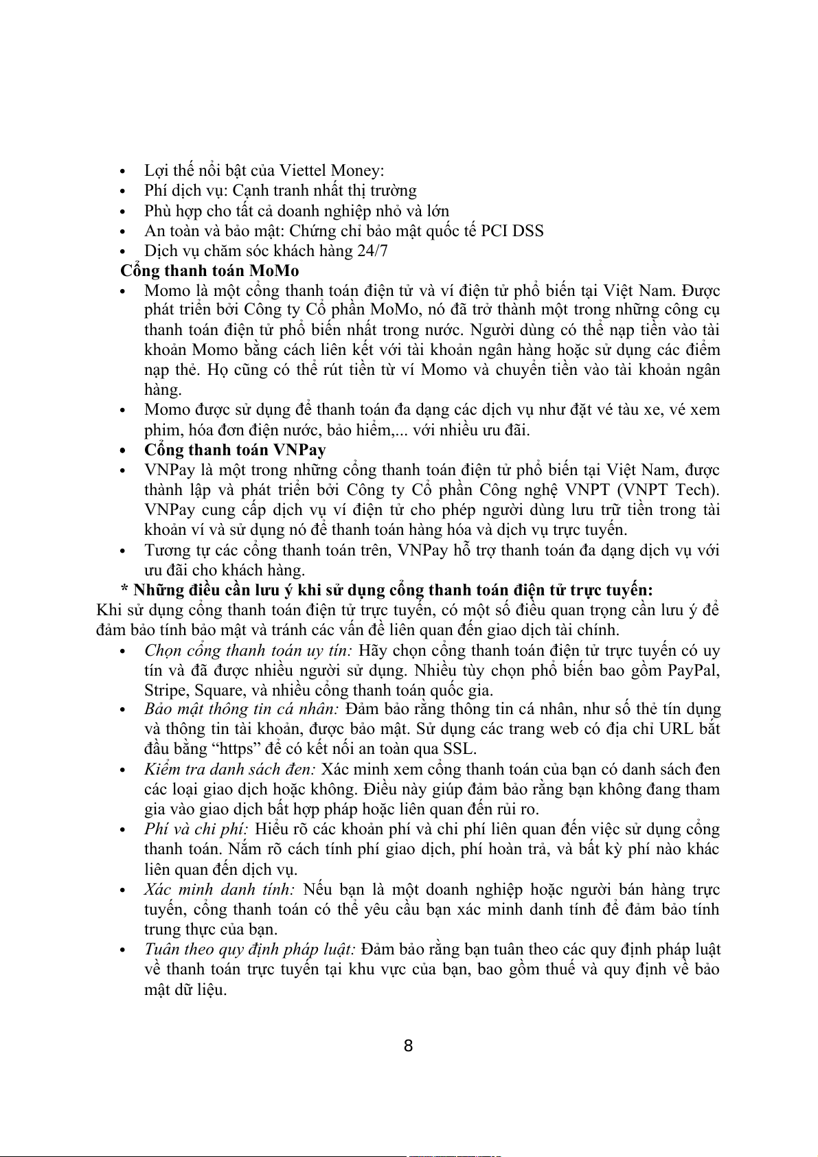 trực tuyến, và các hình thức thanh toán qua điện thoại di động.