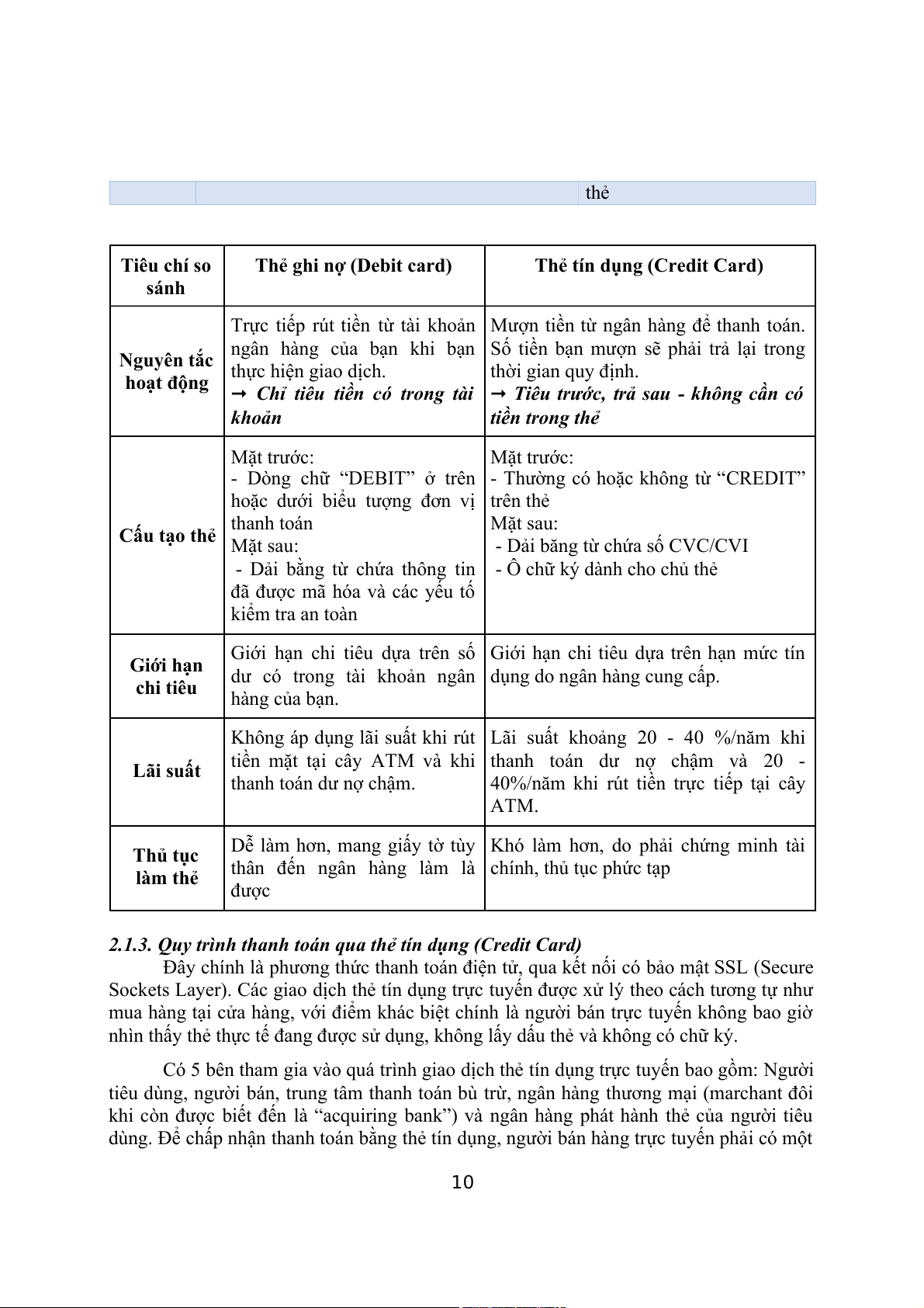 2.1.2. Phân biệt thẻ tín dụng (Credit card) và thẻ ghi nợ (Debit card) 11