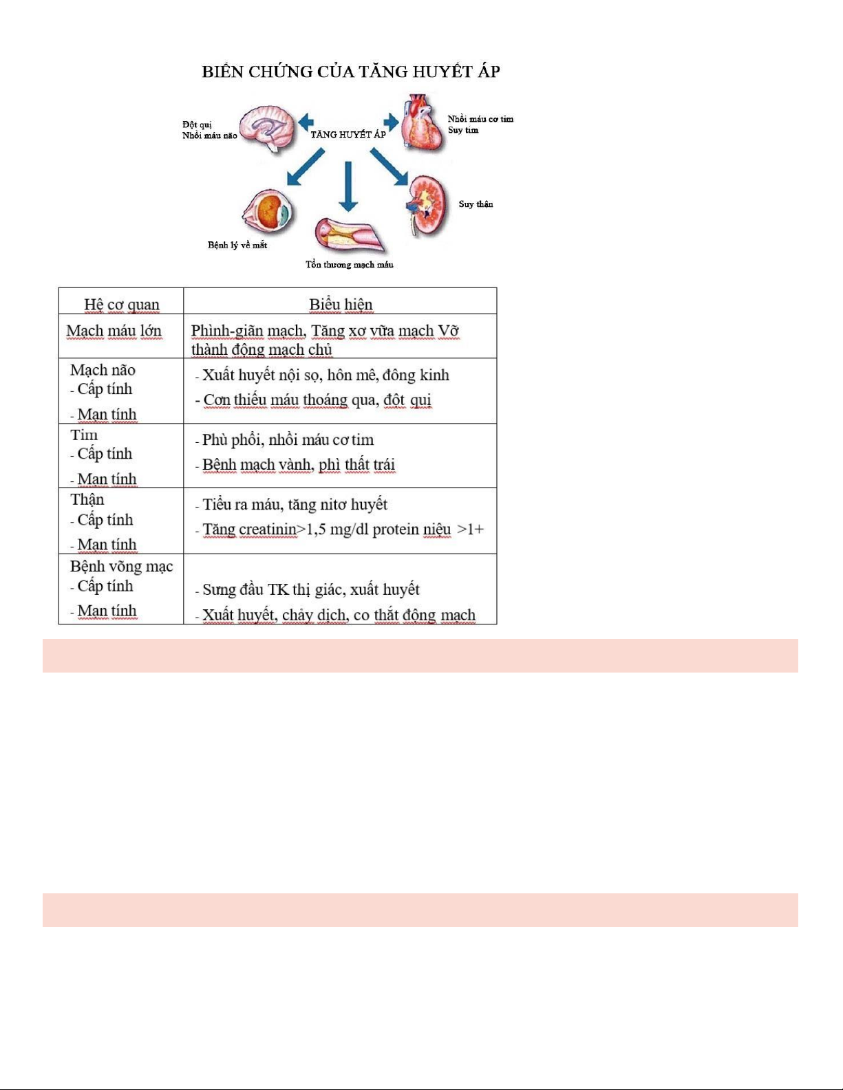 - Tăng huyết áp thứ phát: Tăng huyết áp do bệnh lí, thuốc ≤ 10% bênh nhân 2. BIẾN CHỨNG