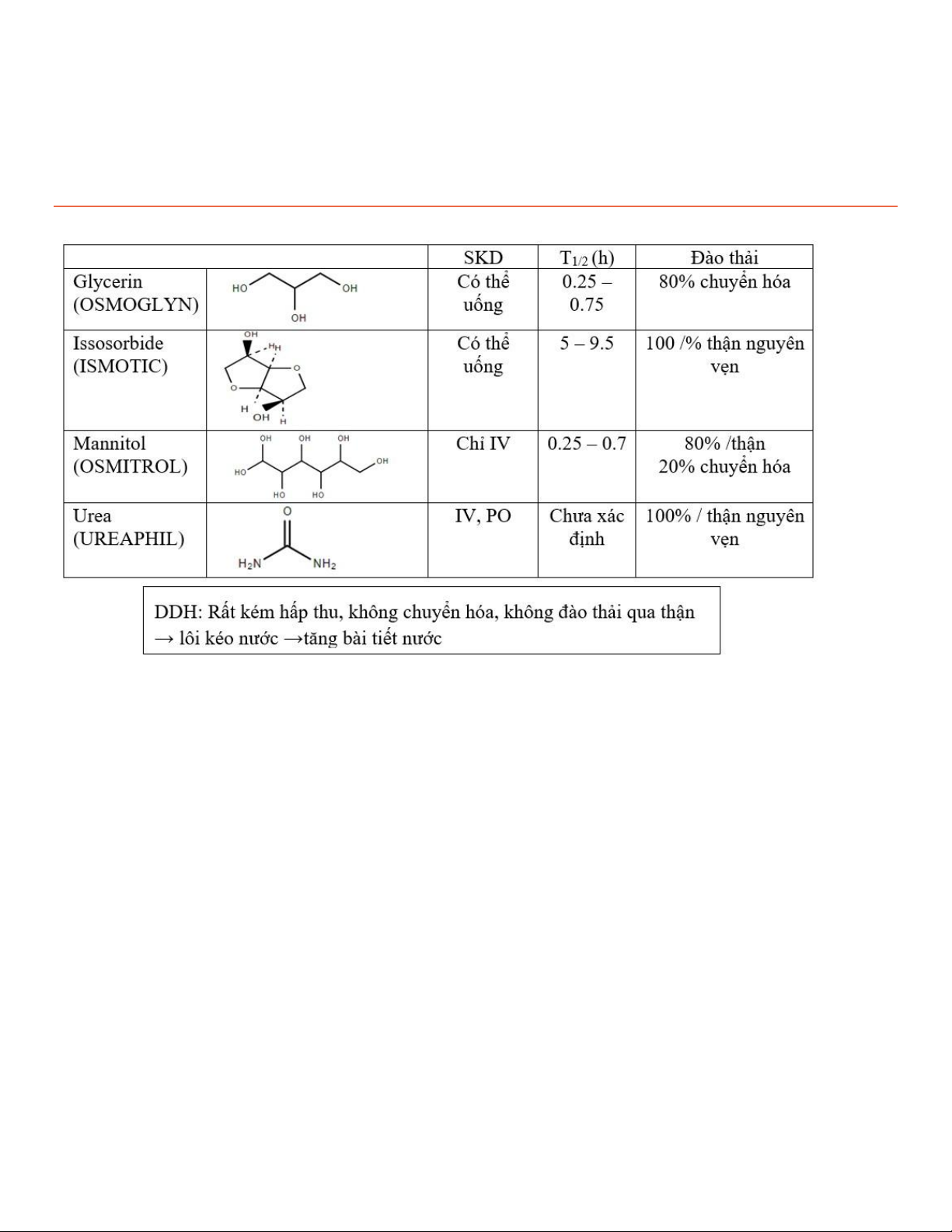 - Nhóm Mannitol: Thải H2O, dùng trong điều trị phù não, tăng nhãn áp cấp tính