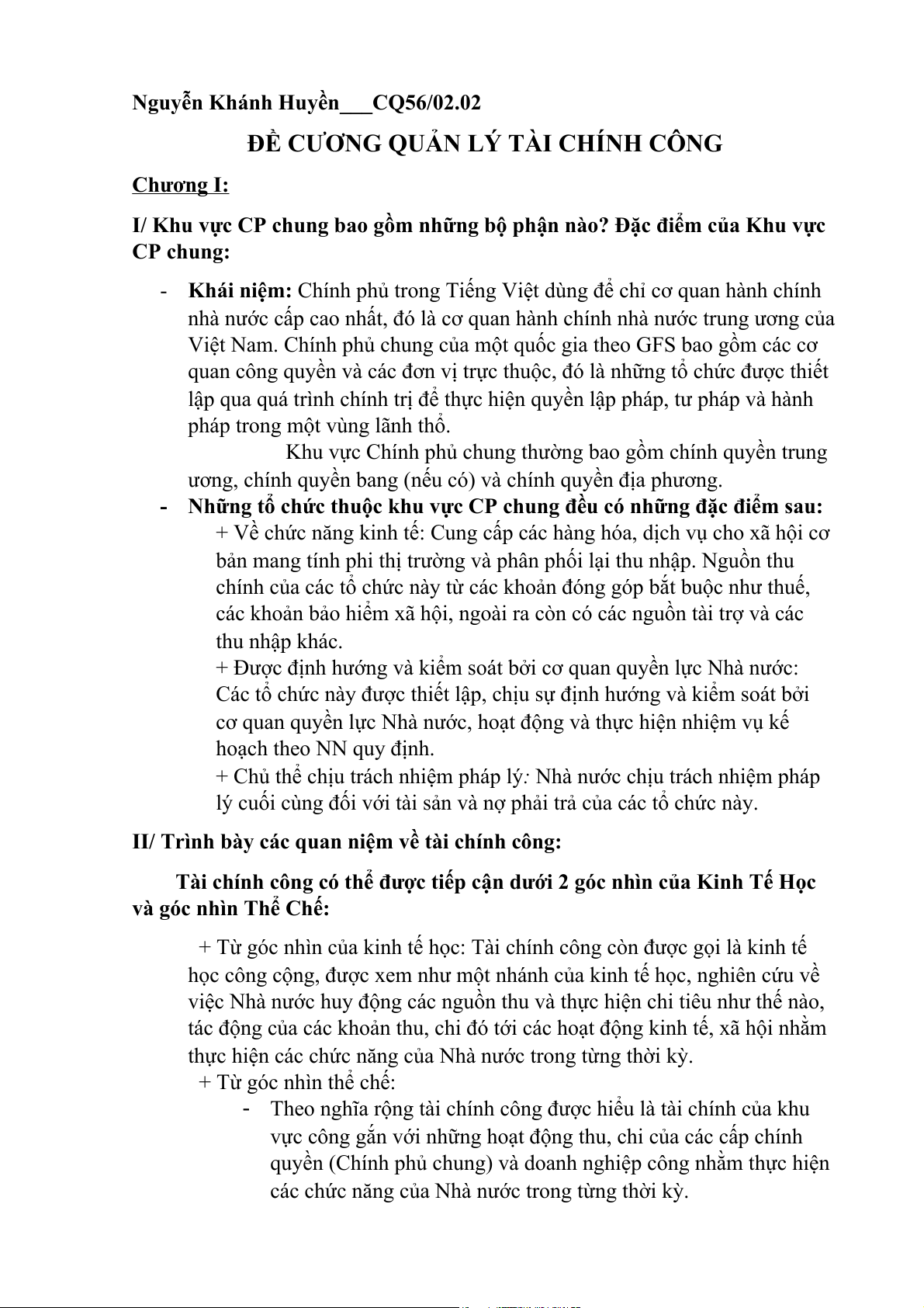 ĐỀ CƯƠNG QUẢN LÝ TÀI CHÍNH CÔNG Chương I: