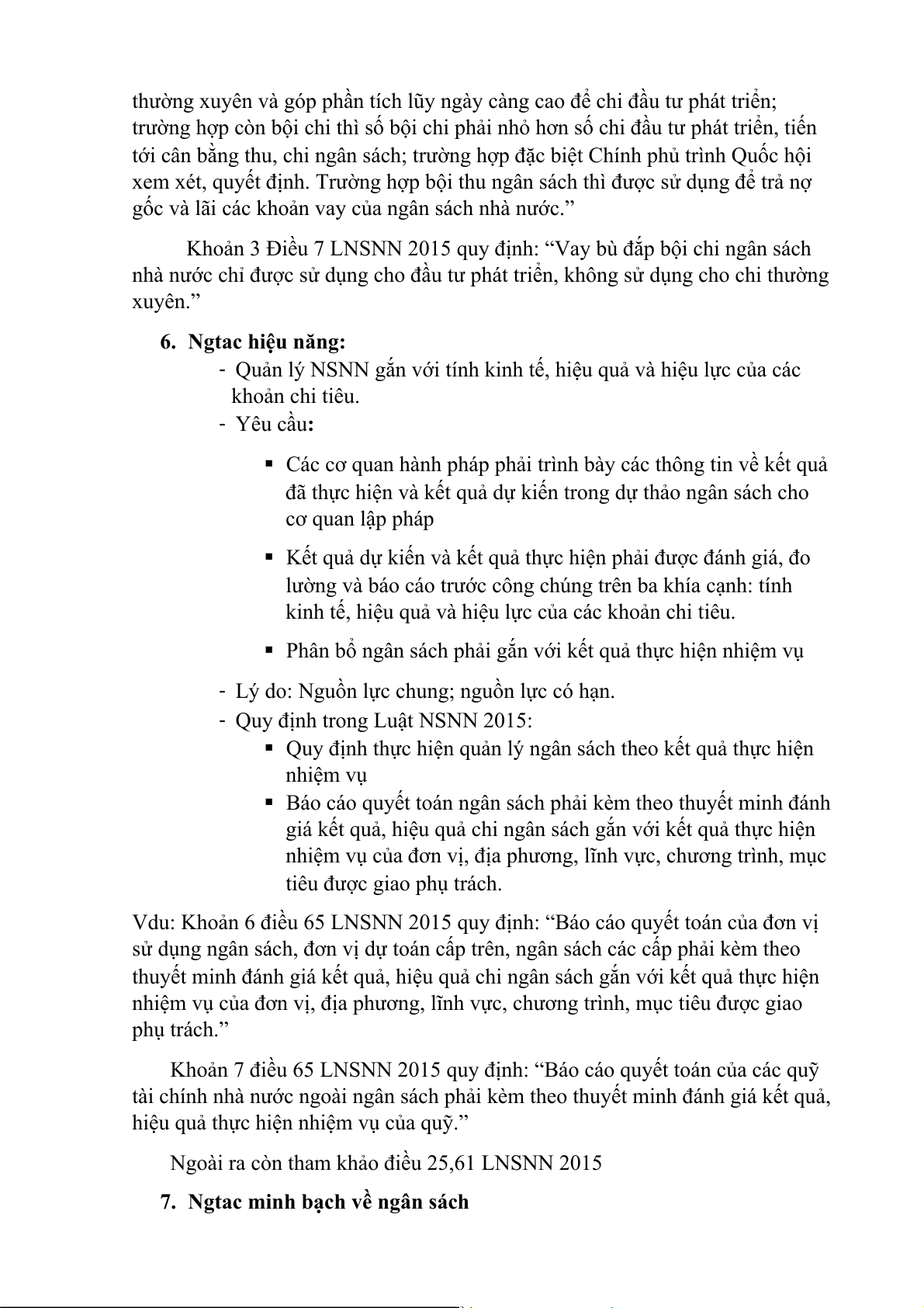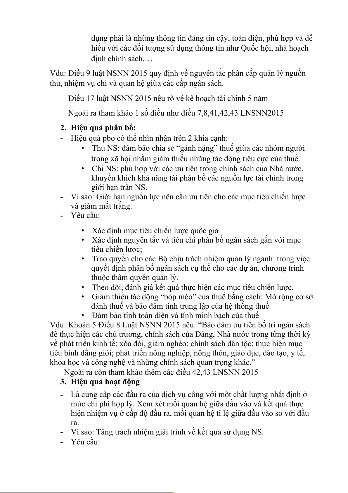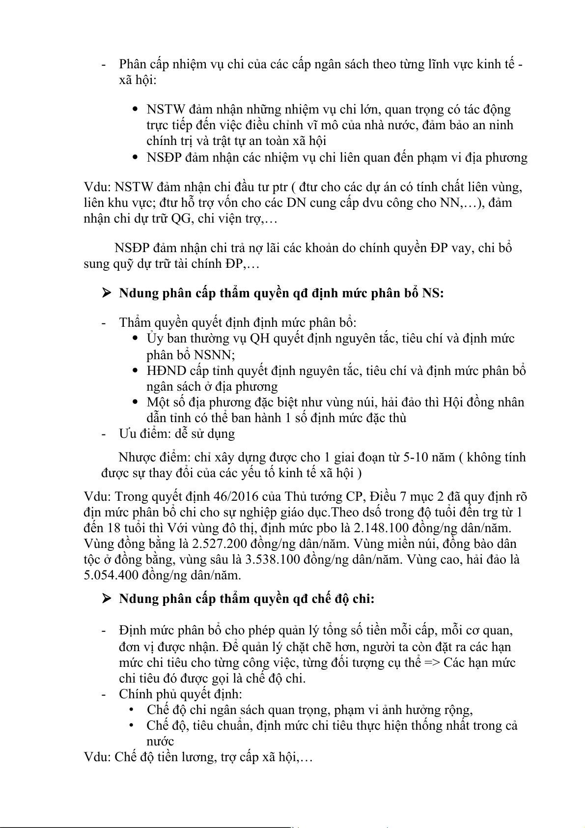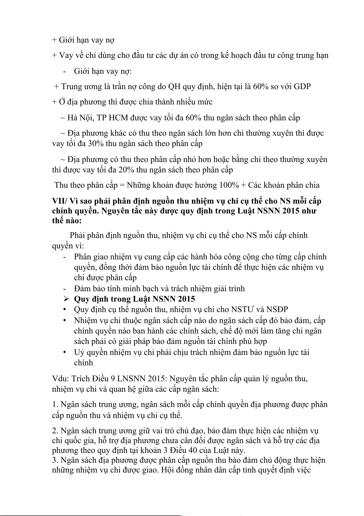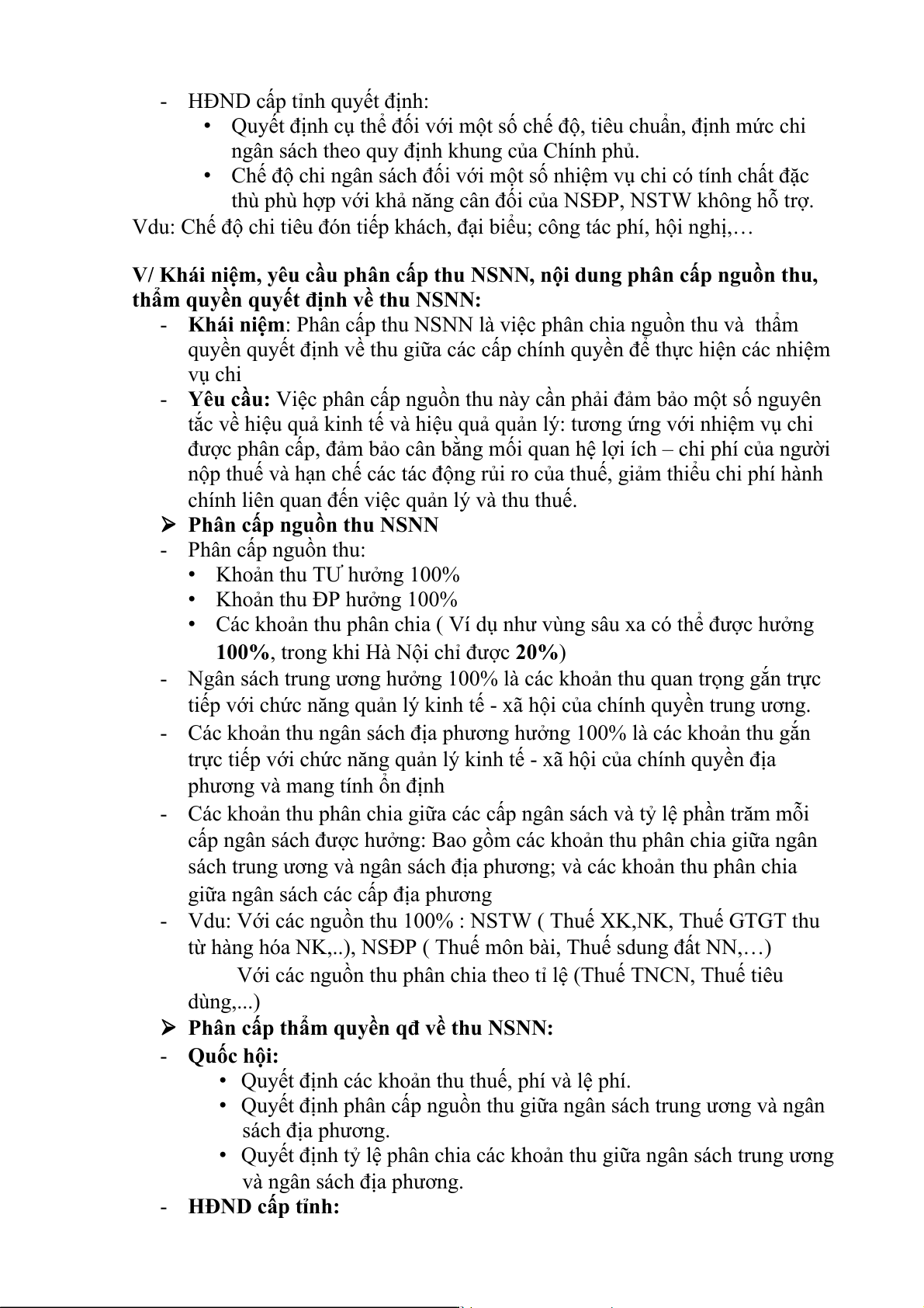 đáp ứng các nhu cầu chi thường xuyên. ( Vd: Thu thuế về sd đất) - Về chi: •
