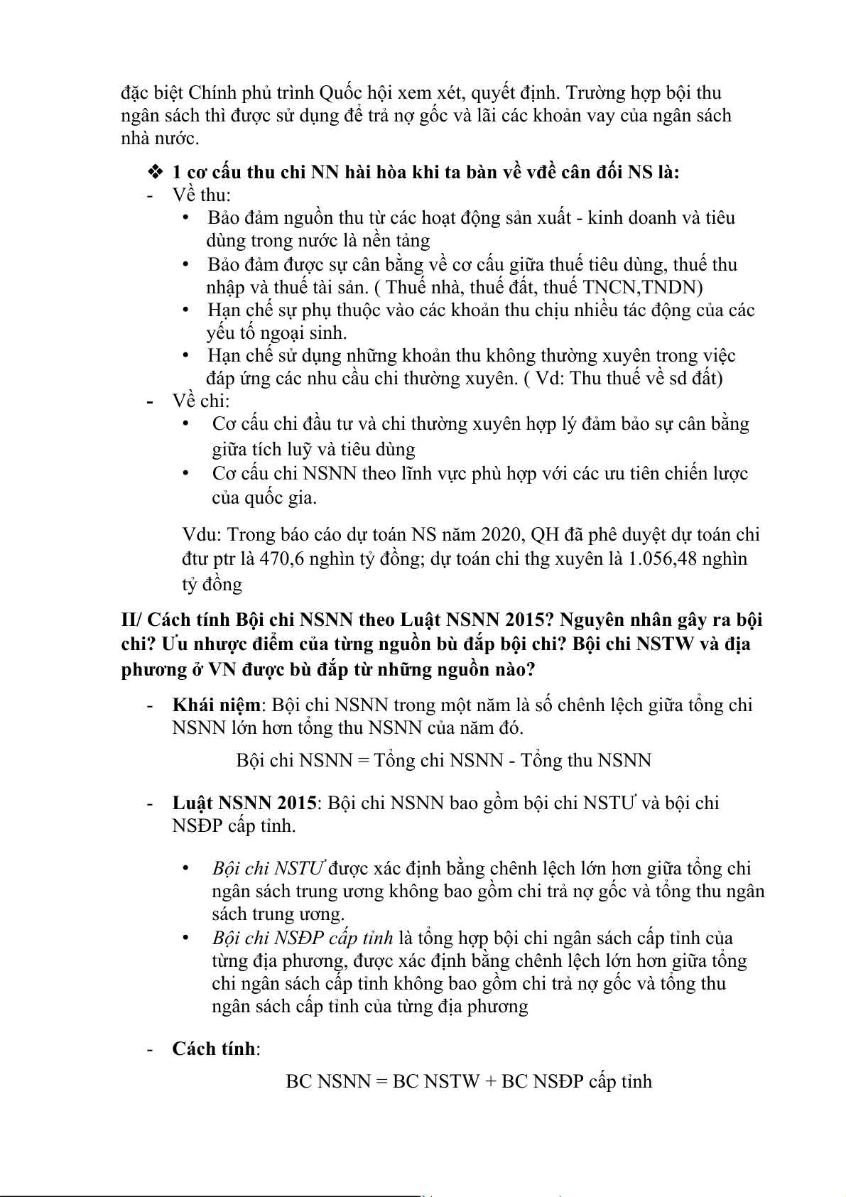 (*) Bội chi NSTW và địa phương ở VN đc bù đắp từ những nguồn: