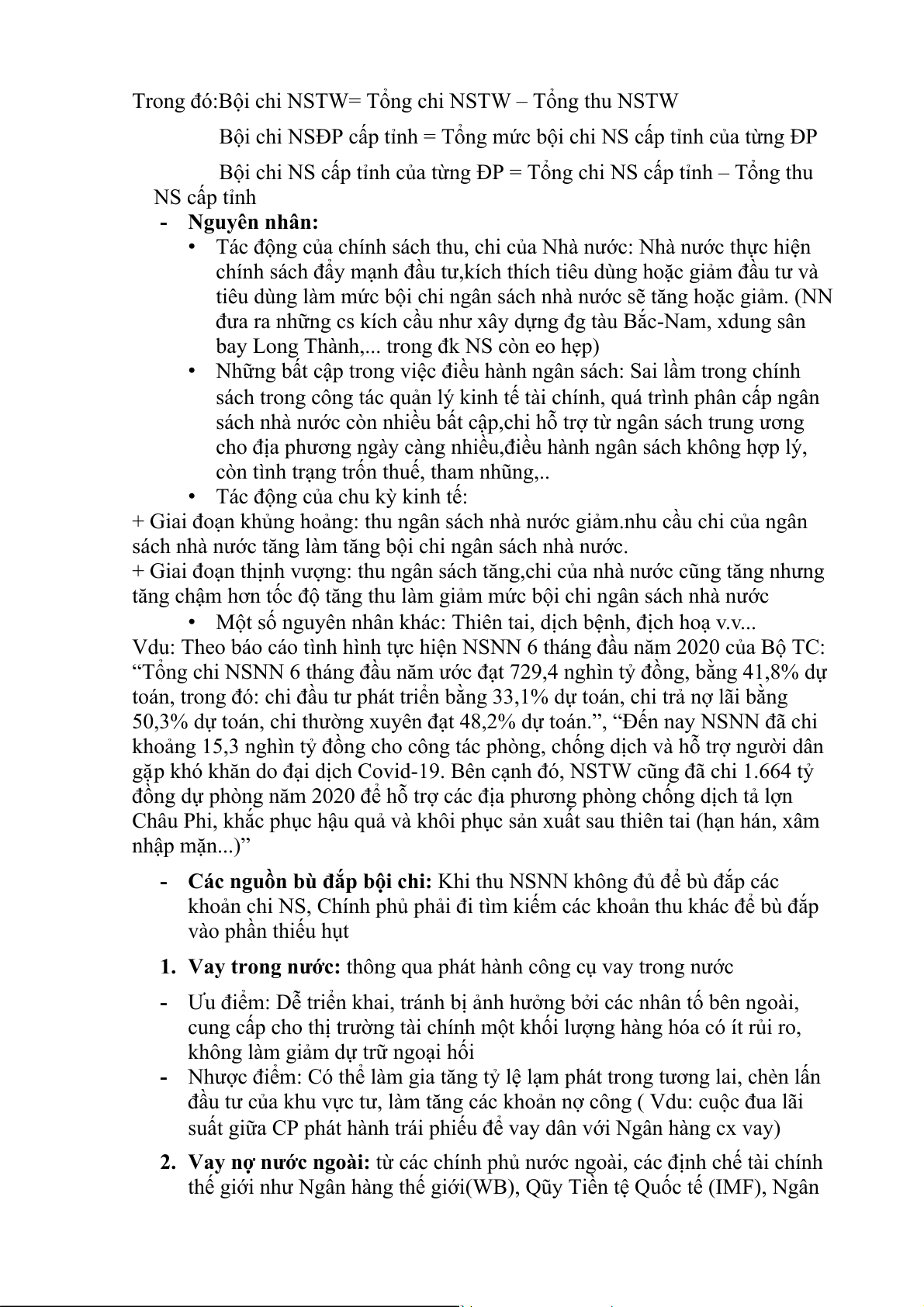 chi? Ưu nhược điểm của từng nguồn bù đắp bội chi? Bội chi NSTW và địa