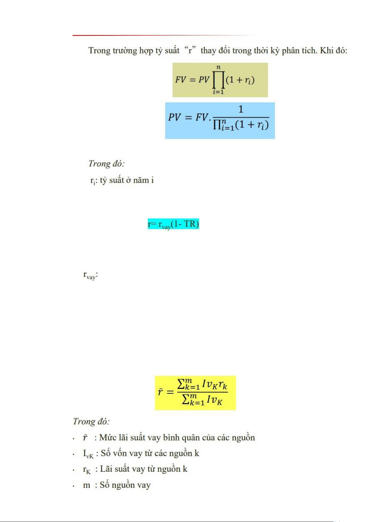 + r: mức lãi suất vốn vay sau thuế + lãi suất vay