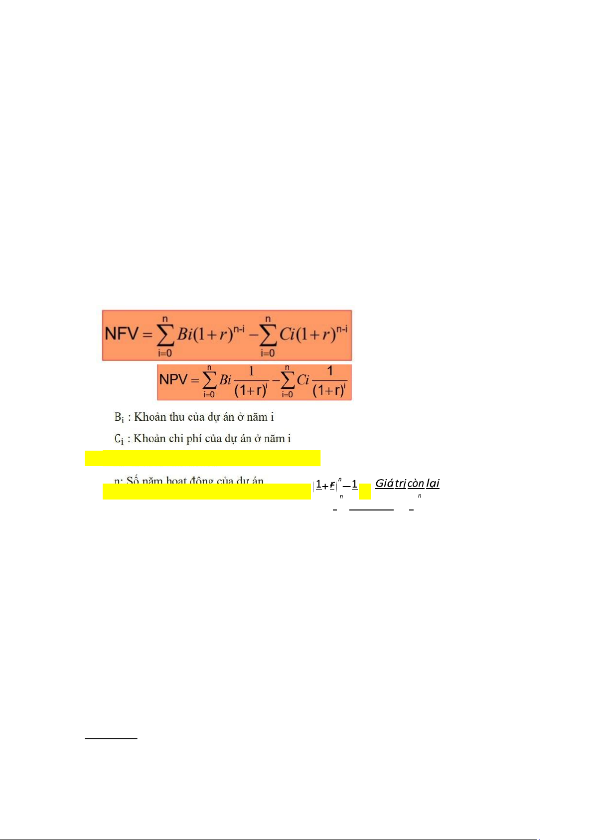 - Thu nhập thuần (NPV; NFV)