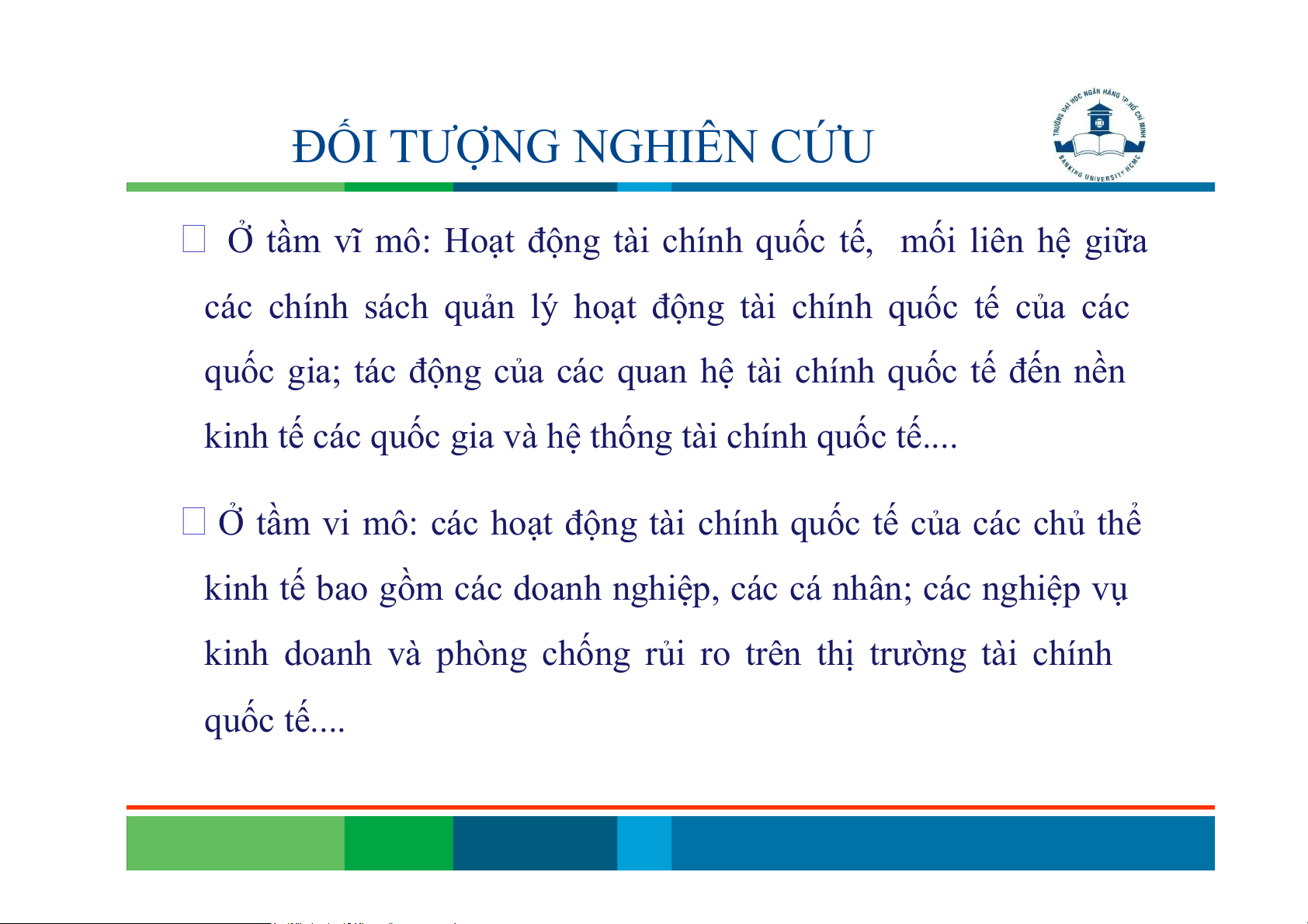 Các hoạt động của thị trường tài chính quốc tế ĐỐI TƯỢNG NGHIÊN CỨU