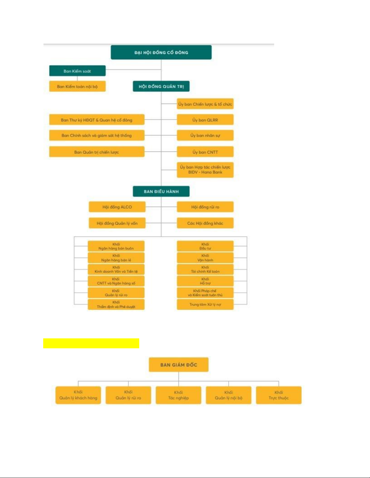 trong nước và quốc tế qua tài khoản, thẻ ngân hàng và các phương tiện thanh toán khác. 4 Cơ cấu tổ chức A, cơ cấu tổ chức lOMoAR cPSD| 59452058 B, Bộ máy quản lý BIDV lOMoAR cPSD| 59452058