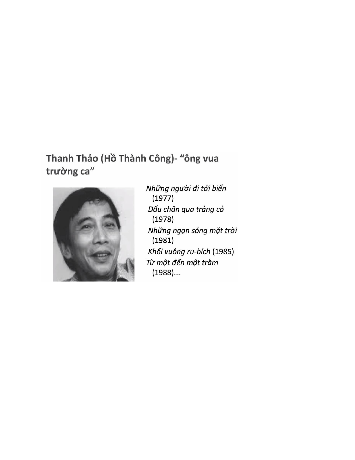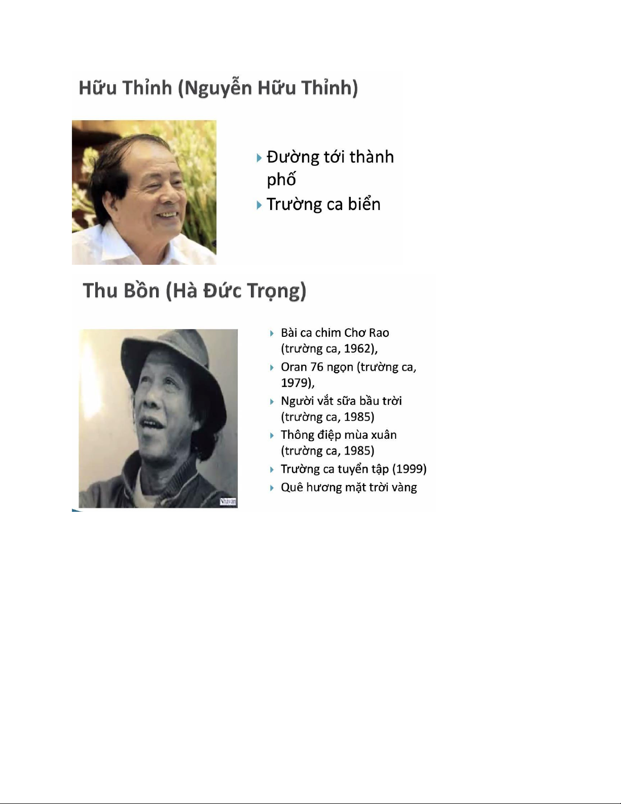 + Tác giả tiêu biểu: Thanh Thảo, Hữu Thỉnh, Thu Bồn, Trần Mạnh Hảo, Nguyễn Đức Mậu,...